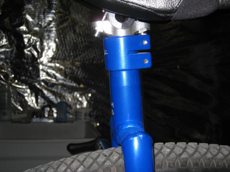 Here are pictures showing the cut down frame with the seat post head recessed into seat clamp. You can see where the bottom of the original frame slot, just below the top seat clamp screw.