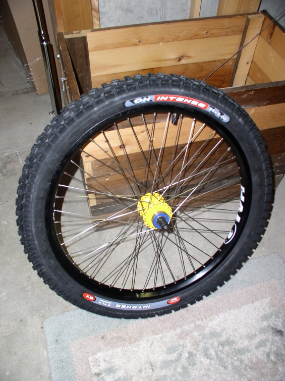 I did a 48-spoke QU-AX / Halo Contra 24" wheel. It seems sturdy but a bit heavy, although I don’t have numbers to back that up. If you do this, use 14/15 spokes to help keep the weight down. The rim has double eyelets. This should be a great wheel for downhills with lots of drops, but probably a little heavy for straight natural trials and 50-50 mixes of slopes.