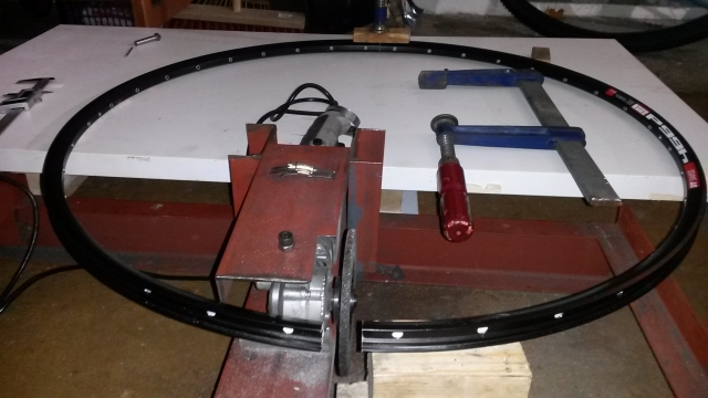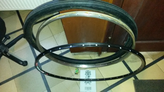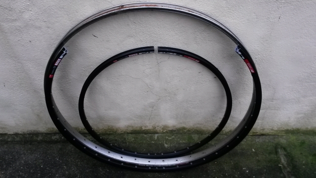 So, jetzt bin ich einen Schritt weiter. Der obige Link von Alexrims funktioniert nicht mehr. War wohl nur ein Werbeprodukt. Da die Hersteller anscheinend nicht vorhaben, eine leichte 36er Felge zu verkaufen, mein altes 36er auf der alten Waage fette 11,3kg anzeigte und mein Schlumpf eine Winterruhe in der Schweiz brauchte, habe ich das Rad um den Schlumpf herum neu erfunden und alle Schwungmassen quasi halbiert.
