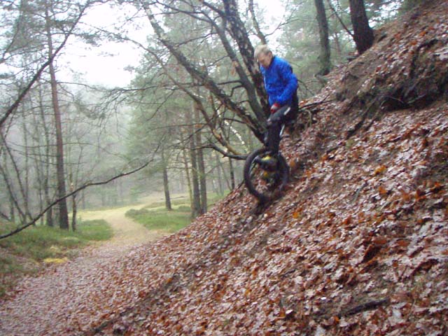 ) verschiedene Downhillstrecken hoch geschoben und wieder runter gefahren und wieder hoch und wieder runter (GMTW lässt grüßen). Vorbei an Radarstation und Müggelturmbaracke und vorallem verrückten Downhill-Bikern, oder wie das heisst. Mit Gummibeinen dann den Rest auf Asphalt zum Auto.