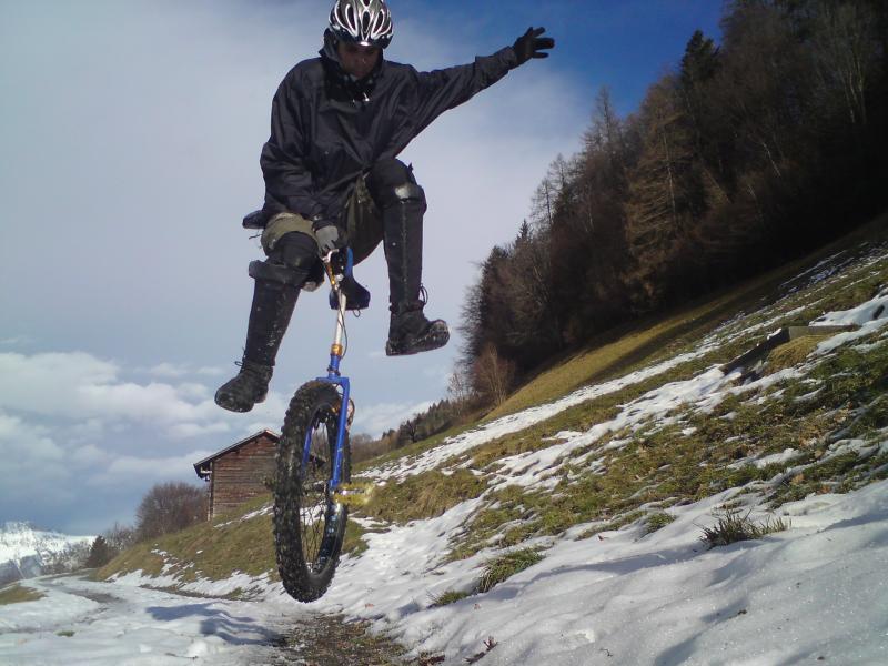 So in unserem Dörflein: Heute mal super geiles Wetter. Ich dann natürlich gleich rausgegangen und zu meinen Stamm Trial- Spot gefahren. Und weil ich heut so ein gutes Gefühl hatte gelich mal neue Sachen probiert. dann bin ich auch mal auf Mauern gesprungen an denen ich schon öfter gescheitert bin. So dann kam der Horror:o : Ich wollte schön von einer Mauer runter auf eine Kante. Ja…dann ist mir leider bei der Landung die Kurbel (oder Nabe mus ich noch mal schauen:D ) verbogen, tolle Wurst…Einrad kaputt kein Geld für ein neues und gerade so schöne erfolge gehabt. Das heißt dann wohl das ich jetzt schön lange Pausieren muss. das halt ich nich aus…![]()