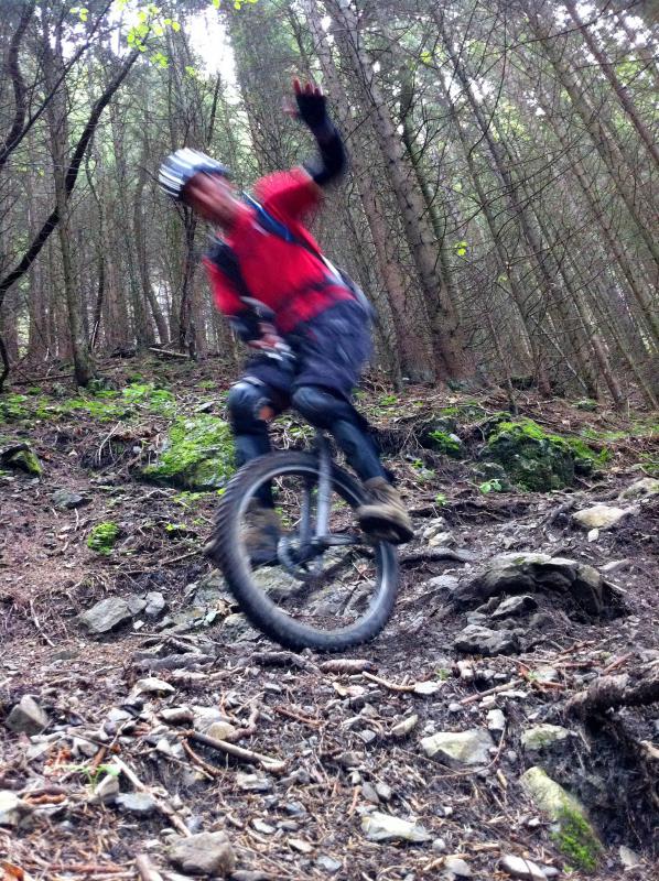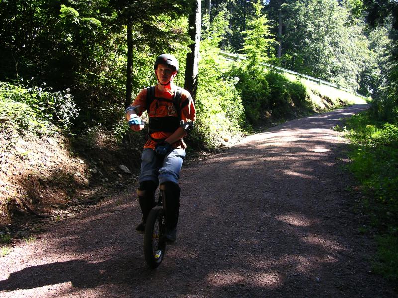 Bin gestern mit meinem Bruder den Schauinsland als auf der Roller-Downhillstrecke (8 km, 750 hm) runtergefahren. Einrad: Qx-Trial mit 125 mm Kurbeln. Die Strecke ging eigentlich nur 3-4 mal kurz hoch, ansonsten nur runter.