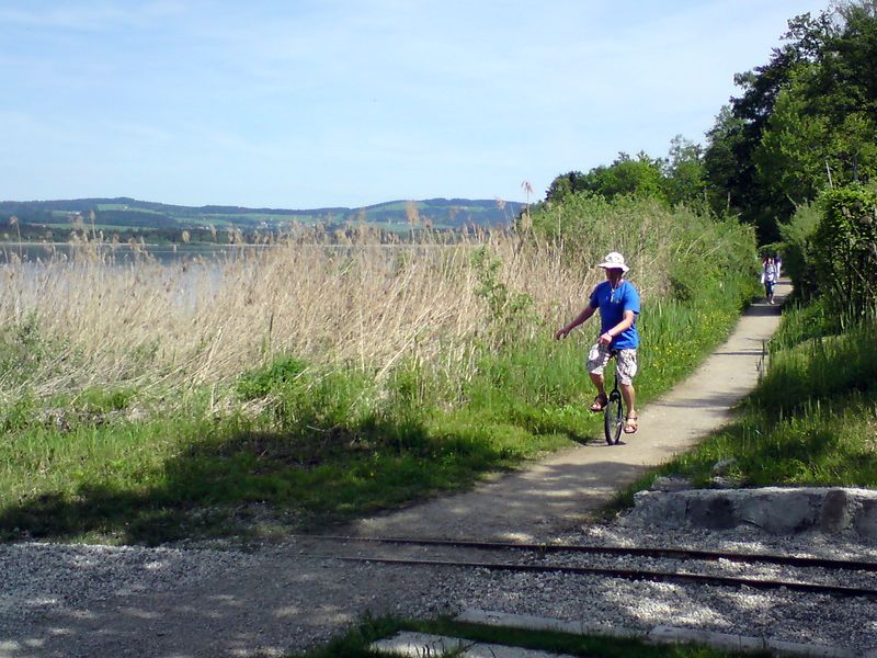 Die ganze Familie ist dabei um den halben Wallersee gewandert und geradelt.