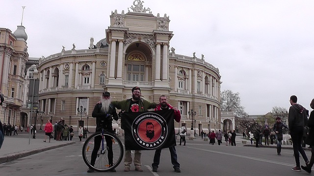 Heute war hier der eigentliche 70. Jahrestag der Befreiung Odessas. Darum war kein Uniausflug geplant, wir hatten uns nur telefonisch mit irgendwem zu irgendwas verabredet (unser russisch ist dafür doch etwas zu dürftig) und gingen davon aus, dass es mit der Sotka zu tun hätte. Als wir dann pünktlich um 10 an der Oper waren, liefen dort gerade die Feierlichkeiten (Nachstellen der Kampfhandlungen, Ansprache, Heldenehrung und Parade). Anschließend trafen wir dann unsere Partner zum Fototermin. Wie sich herausstellte war das die Vereinigung der Odessaer Bartträger.