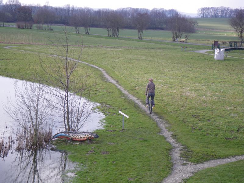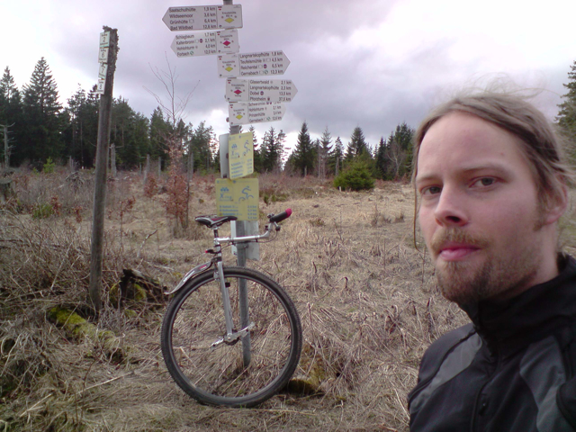 Bin heute morgen in einer Regenpause mal ein bißchen aufs Einrad gestiegen. Es wurden dann ziemlich genau 42km (war nicht geplant, sondern eher Zufall) mit heftigem Gegenwind, zwei kurzen Regenschauern, ein paar Steigungen, Ampeln, Ortsdurchfahrten, den üblichen Problemen des motorisierten Individualverkehrs und einer heftigen und engagierten Debatte mit einem Polizisten über die Zulässigkeit des Einrads im Straßenverkehr. Nach 2:17h war ich wieder zu Hause. Schade daß ich es auch dieses Jahr nicht nach Düsseldorf schaffen werde …