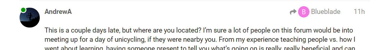 This is a couple days late, but where are you located? I’m sure a lot of people on this forum would be into meeting up for a day of unicycling, if they were nearby you. From my experience teaching people vs. how I went about learning, having someone present to tell you what’s going on is really, really beneficial and can save you a lot of headaches and a lot of hours.