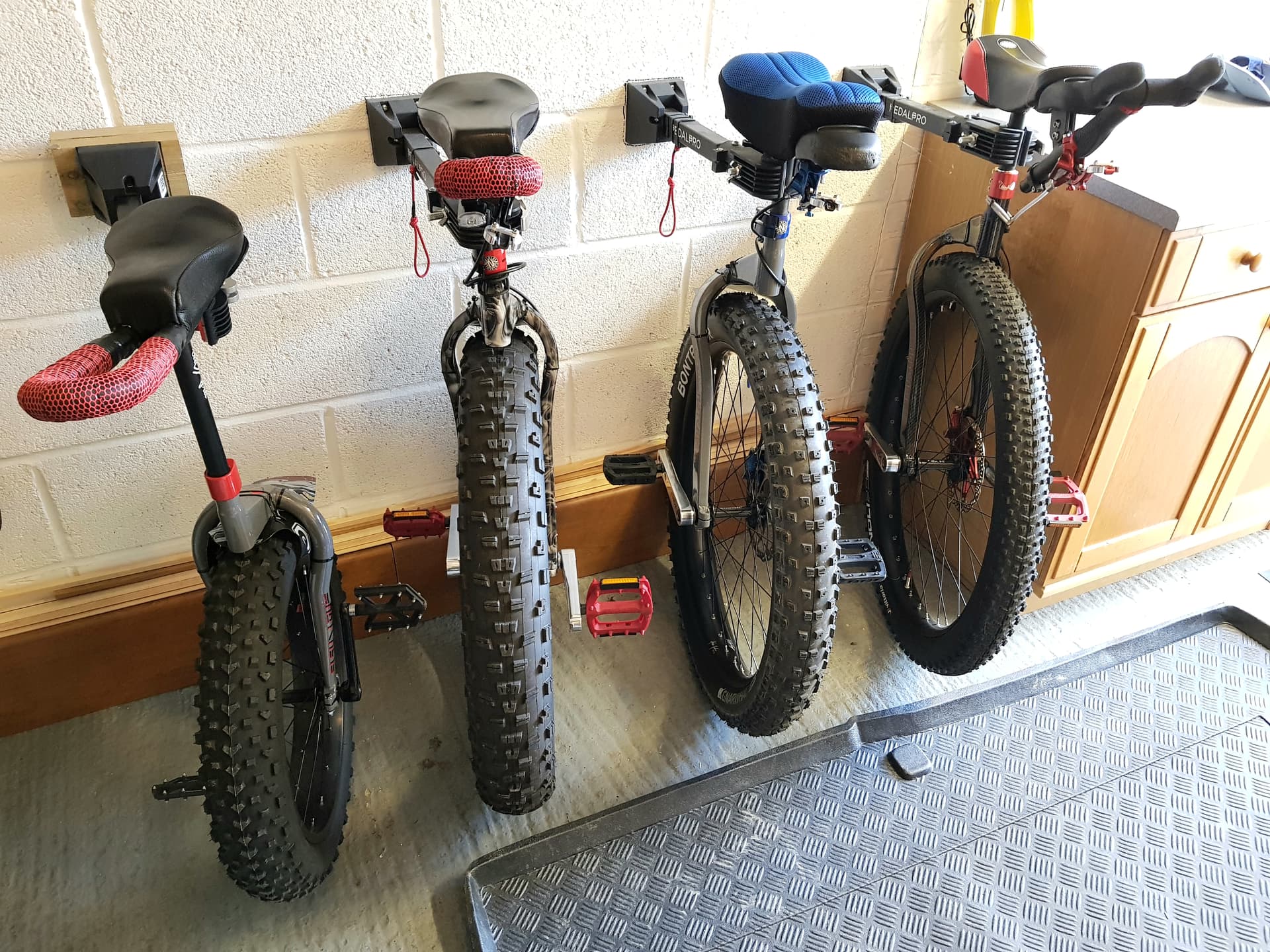 you know that you will save half of that space without the unicycle holders, like I do with piling them on top of each other ![]()