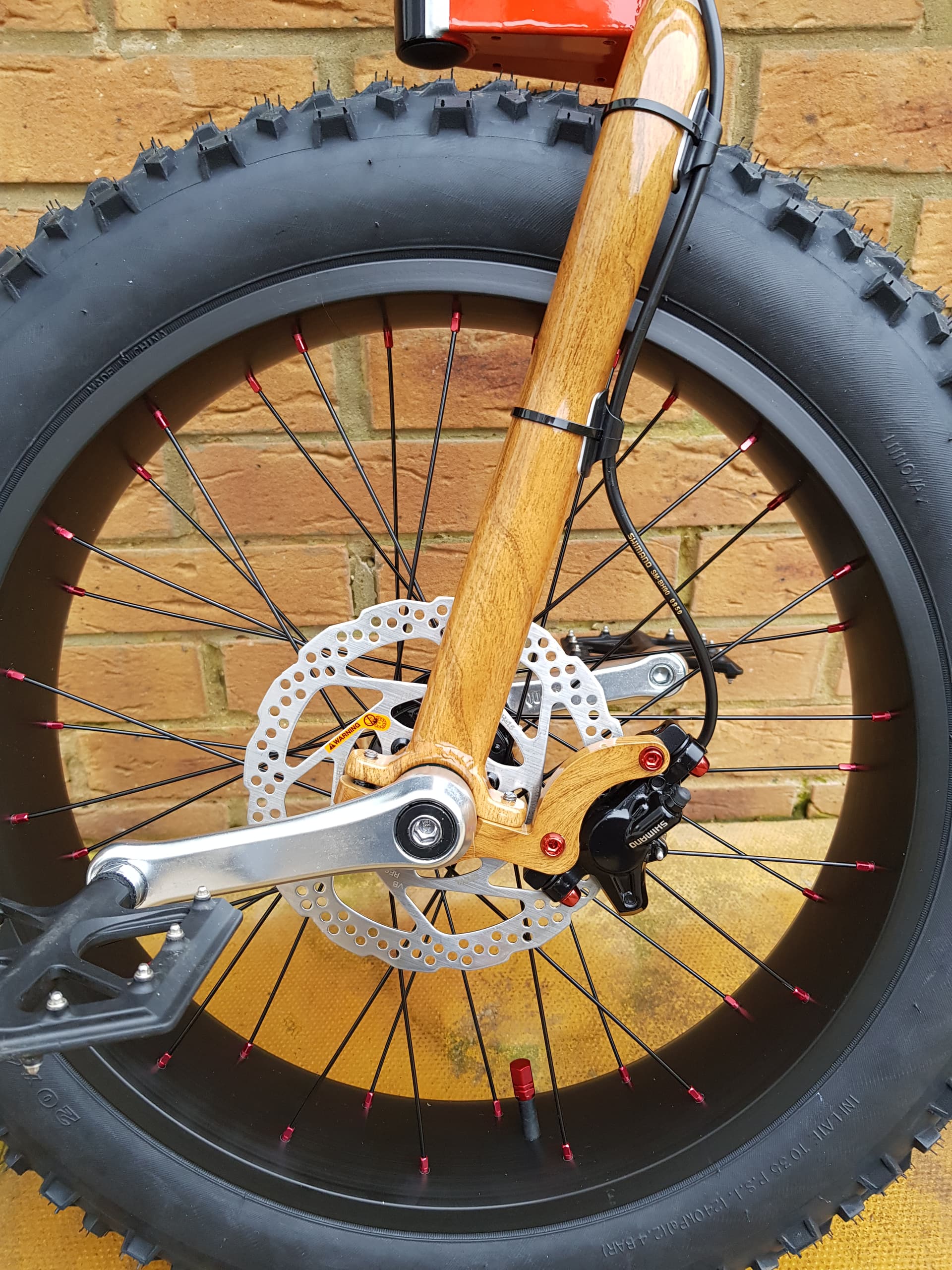 @Setonix, guessing you have the 26x4.8" Hatchet, this is the heaviest and most tiring and most difficult wheel option. You could swap the rim to eirher a 27.5x3.8/3.25" with the Kris Holm free rider rim, or 29x3". Both these builds are lighter, the 3.8" is not as tiring, rim and tyre are lighter and it does not catch the legs. Bonus, you could also fix a 27.5x3.35" Duro Crux even lighter. Both still big fat tyre, good roll over and bounce.