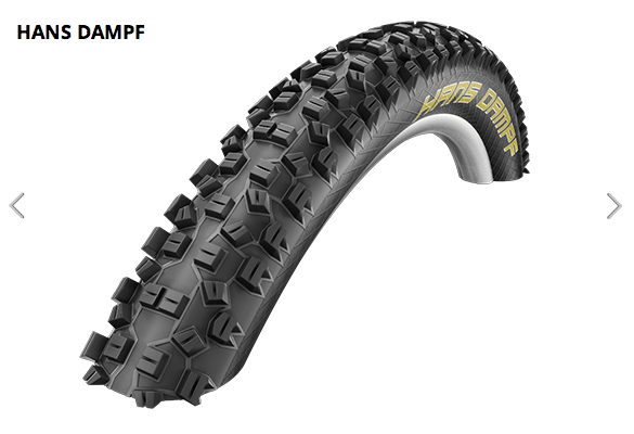 I’ve been riding the original 26 x 2.35 Hans Dampf for about 18 months now, and I really like it. I bought the original version before the “Super Gravity” version came out, and I bought the version with the “Trail Star” compound rather than the “Pace Star” compound, because that was what was available at my LBS (GoRide). Although the sidewalls of the Super Gravity version are thicker, and would therefore provide protection from snakebite and rock cuts, I think it’s overkill for my ability, weight, riding style, and aggressiveness / risk tolerance, plus it’s 250 g heavier (1015 g vs. 765 g). If I rode more big drops, it would likely be a better choice because of its increased durability – but I was looking to keep the weight down, and the snakeskin sidewalls of the normal version are surprisingly tough.