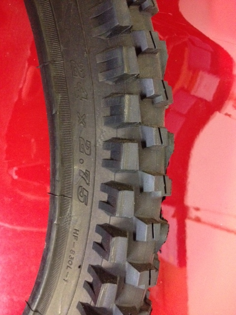 The tires say 2.75 on the side, but I don’t see them getting wider than 2.5" when inflated. Less than that from corner knob to corner knob when unmounted. I don’t know how to contact you. Please send email to jfoss at unicycling com. I have some photos now, but don’t want to gunk up this thread.