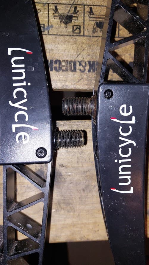 For a few months now, I have a 16" and a 20" lunicycle. The threads of the leg supports are different on the 2 and are smaller than those used for standard pedals. I don’t know why they did this…