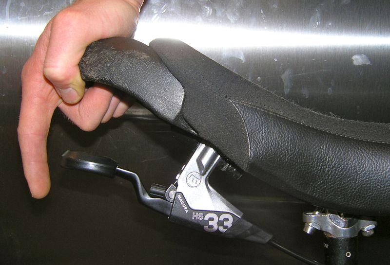 I got back home and took the saddle off to do some comparisons to the older HS33 levers with the lever blade position allen keys adjusted to place the lever close to the saddle. This is what I found when I measured the reach to the lever:
