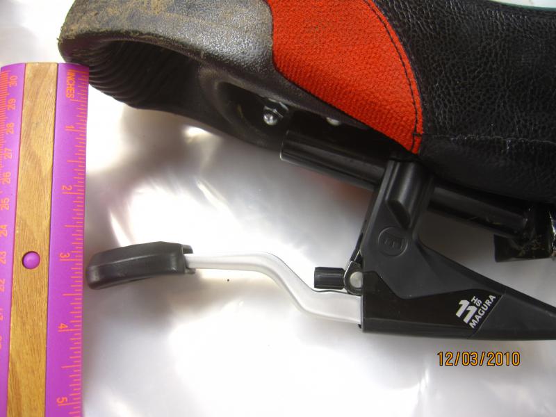 I guess I could live with the ineffective TPA, but that lame spring loaded lever blade positioner really bugs me. . . . . I might change my mind later, but this lever was not designed with unicycles in mind and since I like to ride with the lever blade closer to the saddle, I guess this is a miss for me and likely other riders with small hands. I haven’t given up yet . . .I’m gonna get a couple of the shorter 2-finger lever blades and see how they feel before I give up on this.