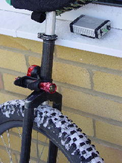 I didn’t have time to dig out proper lights - instead I quickly strapped on an LED Maglight to the frame and stuck to the streetlit road and pavement.