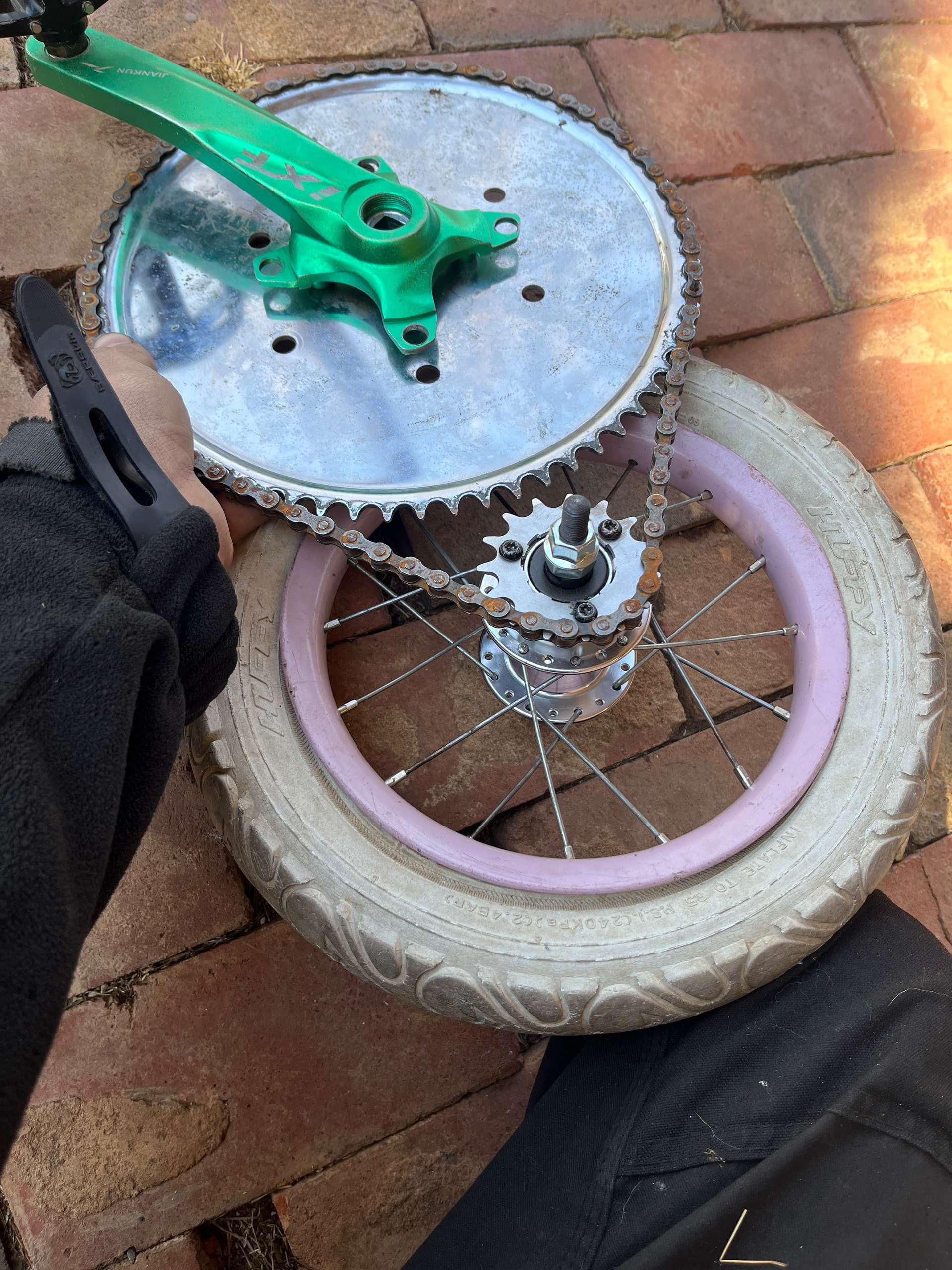 I’m interested to see how this goes as I’ve toyed with the idea of a 12” giraffe before. I’d definitely like to see how you’ll go about modifying that 15t cog to fit and how close the chain clears the hub. I have a clown bike with a 16t 6 bolt cog and I wouldn’t mind a little more speed from it