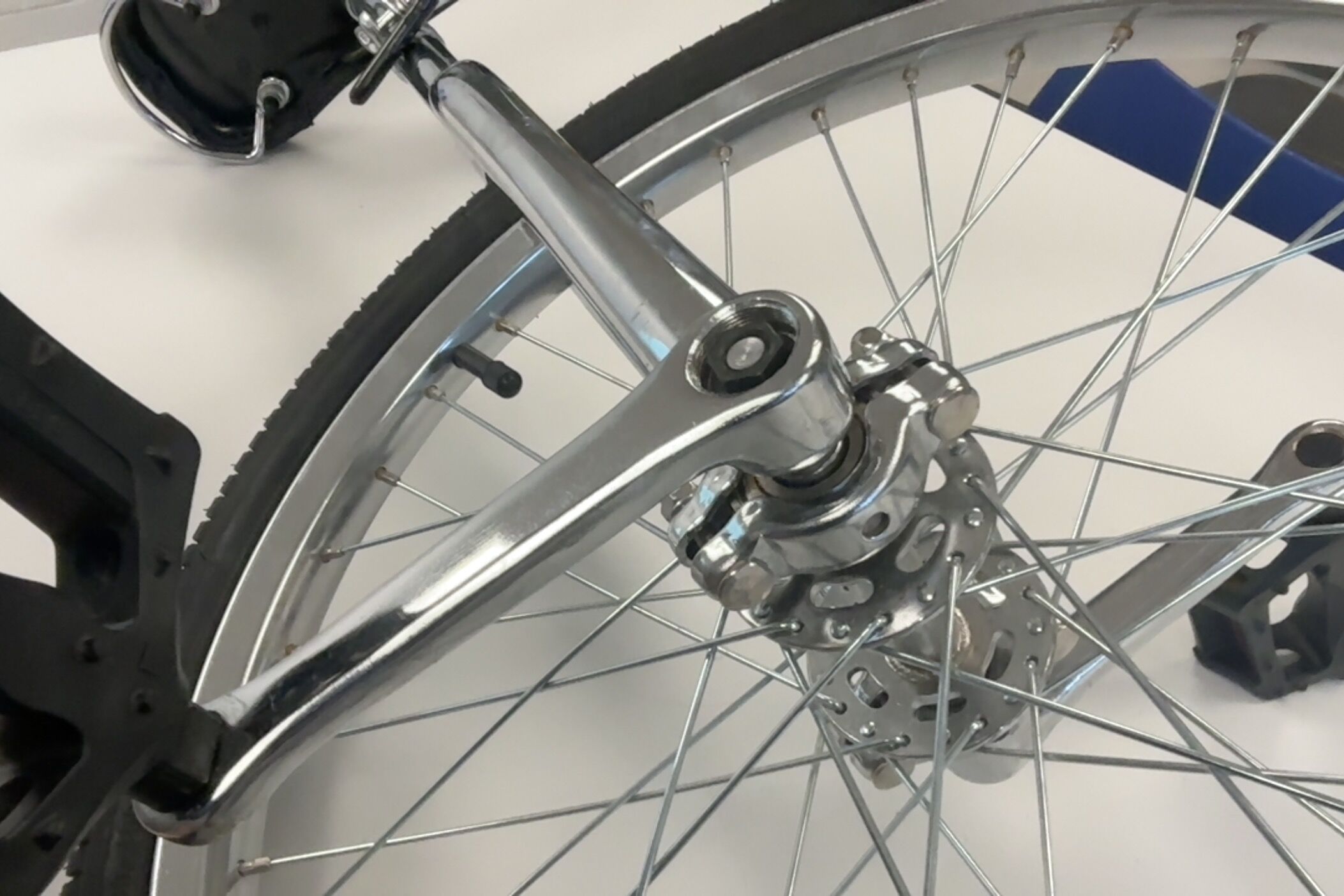 On a 20" frame the first thing I add are pipe clamps so that I can rest my foot on the frame when riding one-footed: