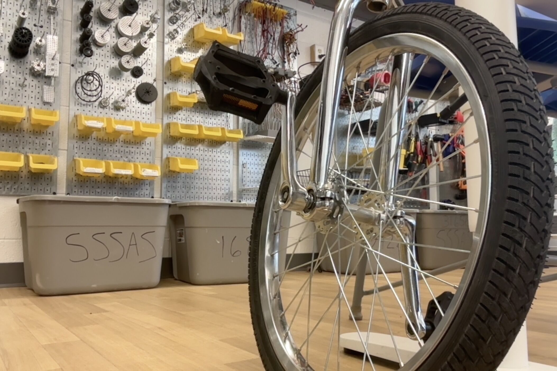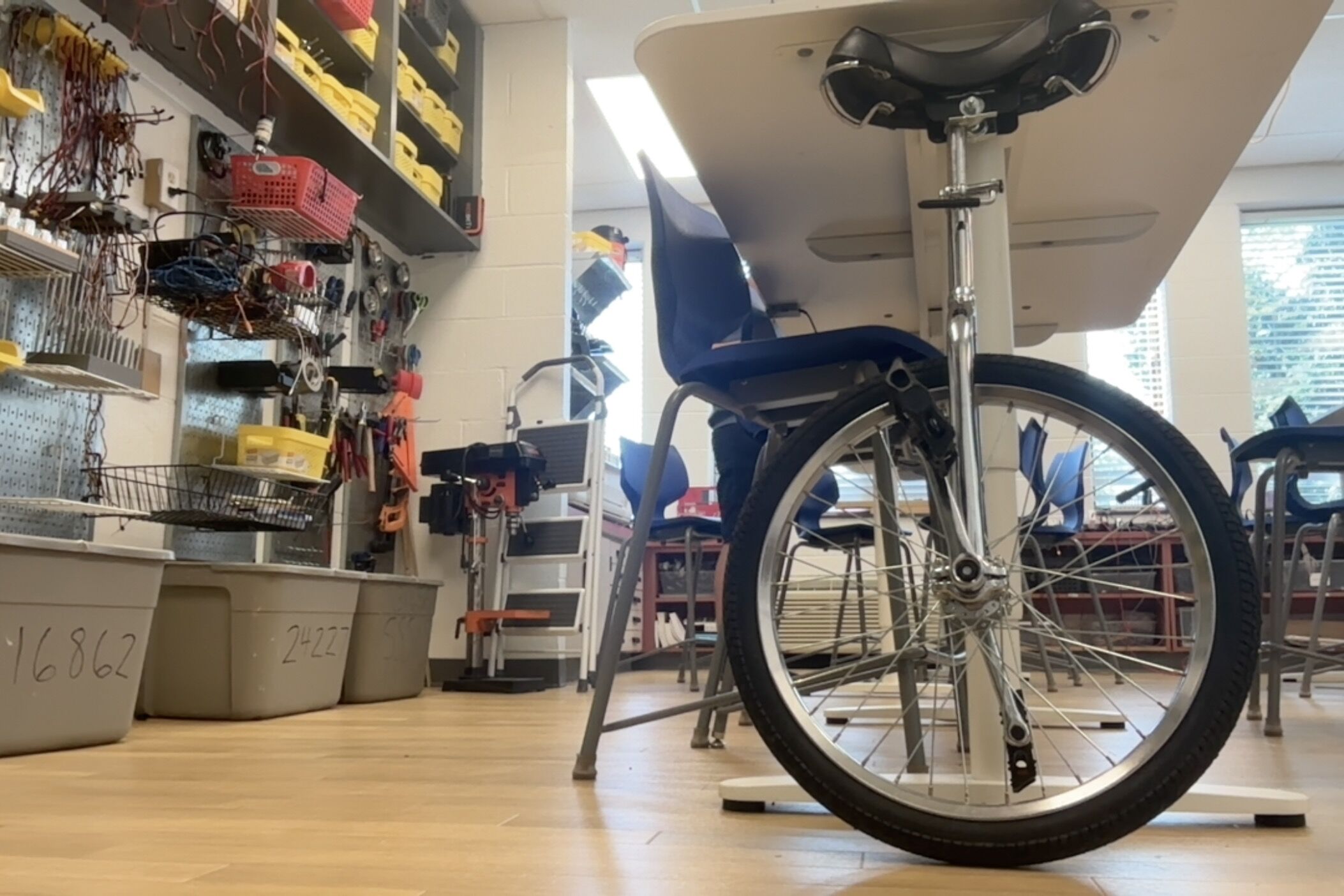 My science teacher heard of my unicycle club, and brought in an old low quality unicycle.