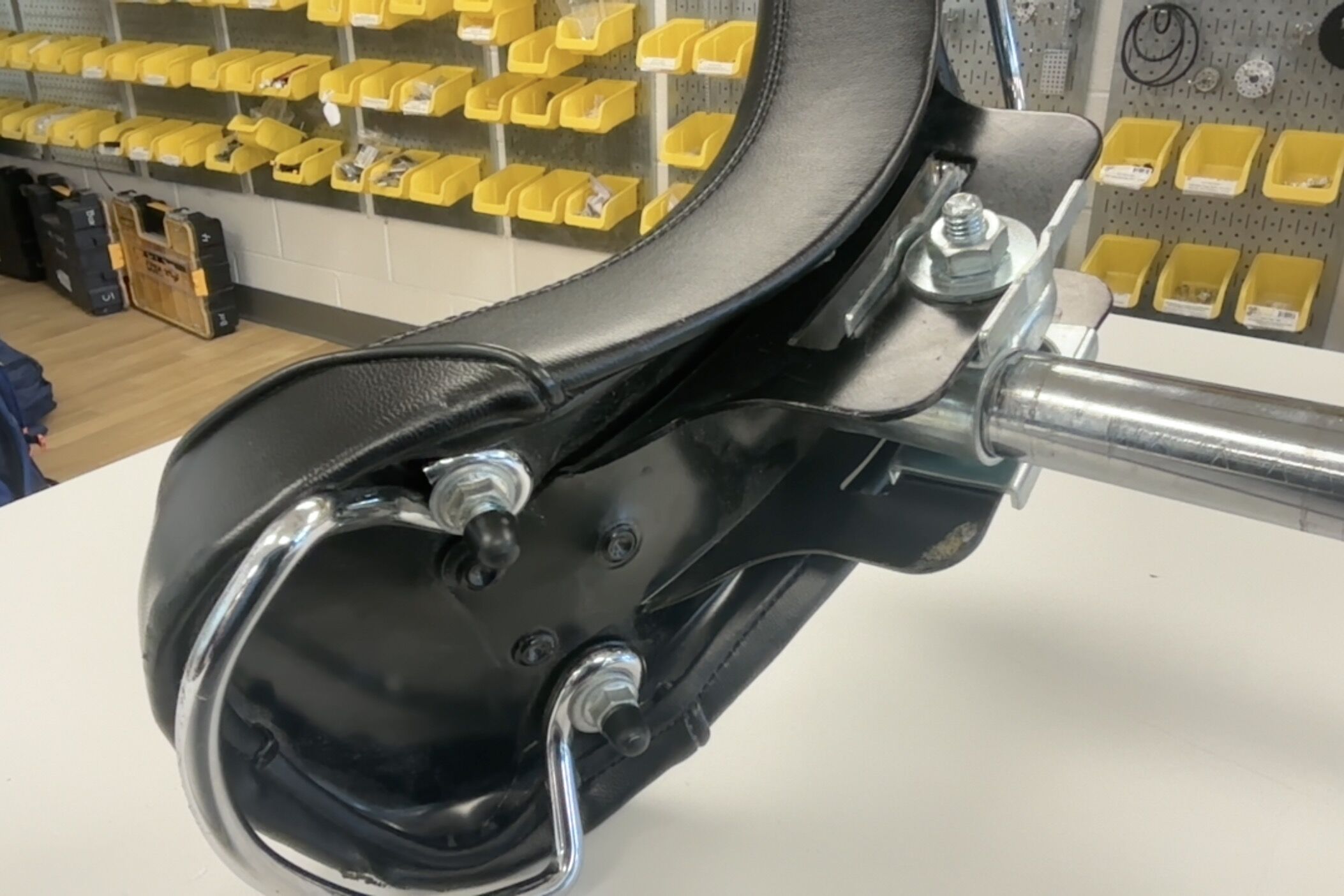 On the saddle side of things, a good option would probably just be getting a new seat post + saddle. Measure the diameter of the current seat post with some calipers and make sure to get a post of the same width. A regular Club saddle from UDC would work well enough for learning