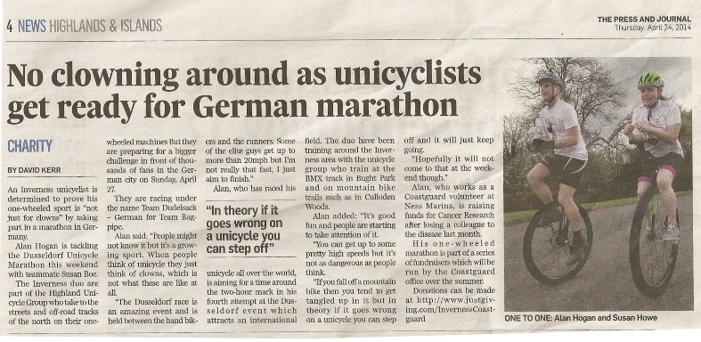 Es ist wirklich verdammt wichtig für uns, da wir alles tun damit wir 2015 erneut einen Einrad-Marathon durchführen können.