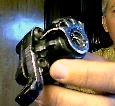 A friend gave me an old mechanical caliper with no name that was a little narrower, but not enough. The upside is that when I took the dust cap off on the driver side there was about 3mm’s of material there that was serving only to hold the dust cap on. So, I took out my grinder, and now I’ve got room to spare. I went ahead and sawed the barrel adjuster arm off of the caliper as well. I think I’ll be able to run the bare cable inside the frame up to a barrel adjuster mounted to one of my maggy bosses. It should make for a very clean cable routing.