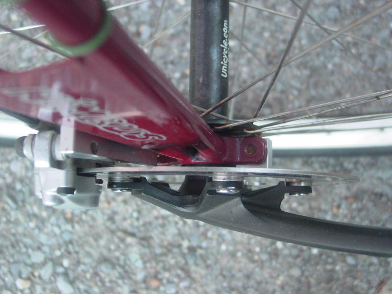 this is how it looks on my 29er, with a welded on caliper mount and sinz cranks: