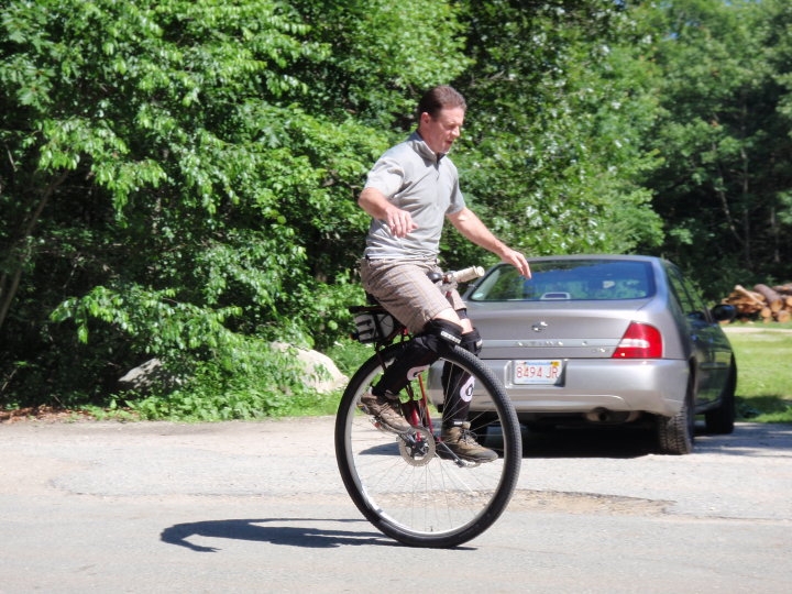 this is Jeff riding a 36,29,24" unicycles with the Mountainuni brake system…