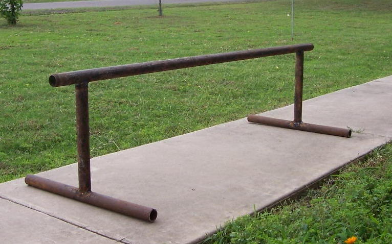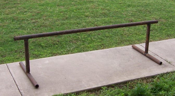 I finally got my rail finished. I cut the pieces and then I talked to a guy who welded them for me. The two legs are 15" high. The bases are 2ft long. The whole thing is around 5 and 1/2 feet. There is about 4 inches left on the ends past the legs of it.