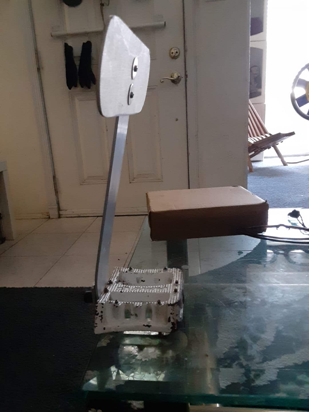 You’re always welcome to ask and I understand the urge. It is possible for everyone to create it with Wellgo pedals, metal brackets, something to drill like a drill press and i.e. a jigsaw. About 12 years ago I created ‘lowrider pedals’, what is like the Lunicycle pedal without the leg support. I used conventional tools. I still have the pedals and the metal brackets.