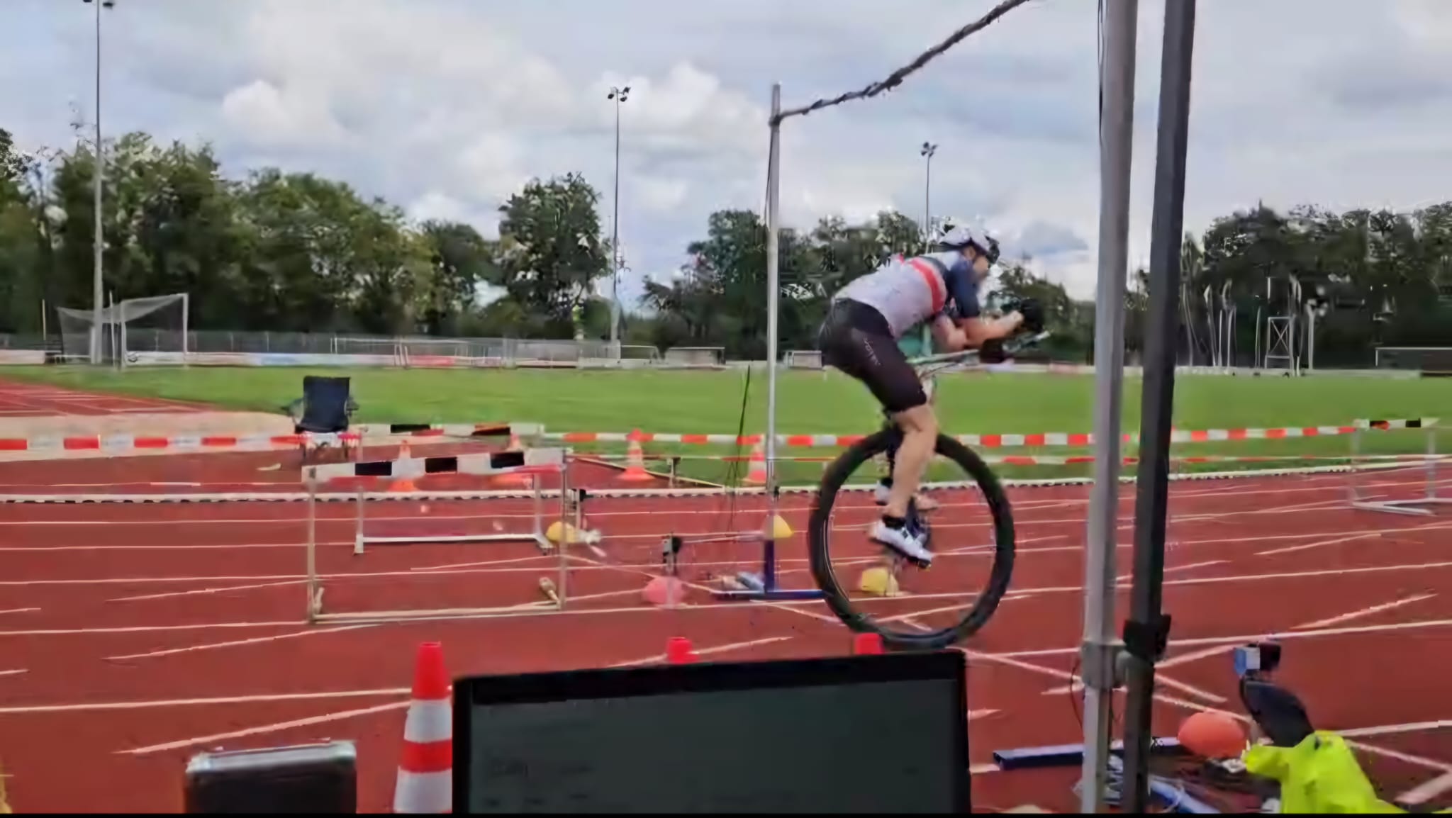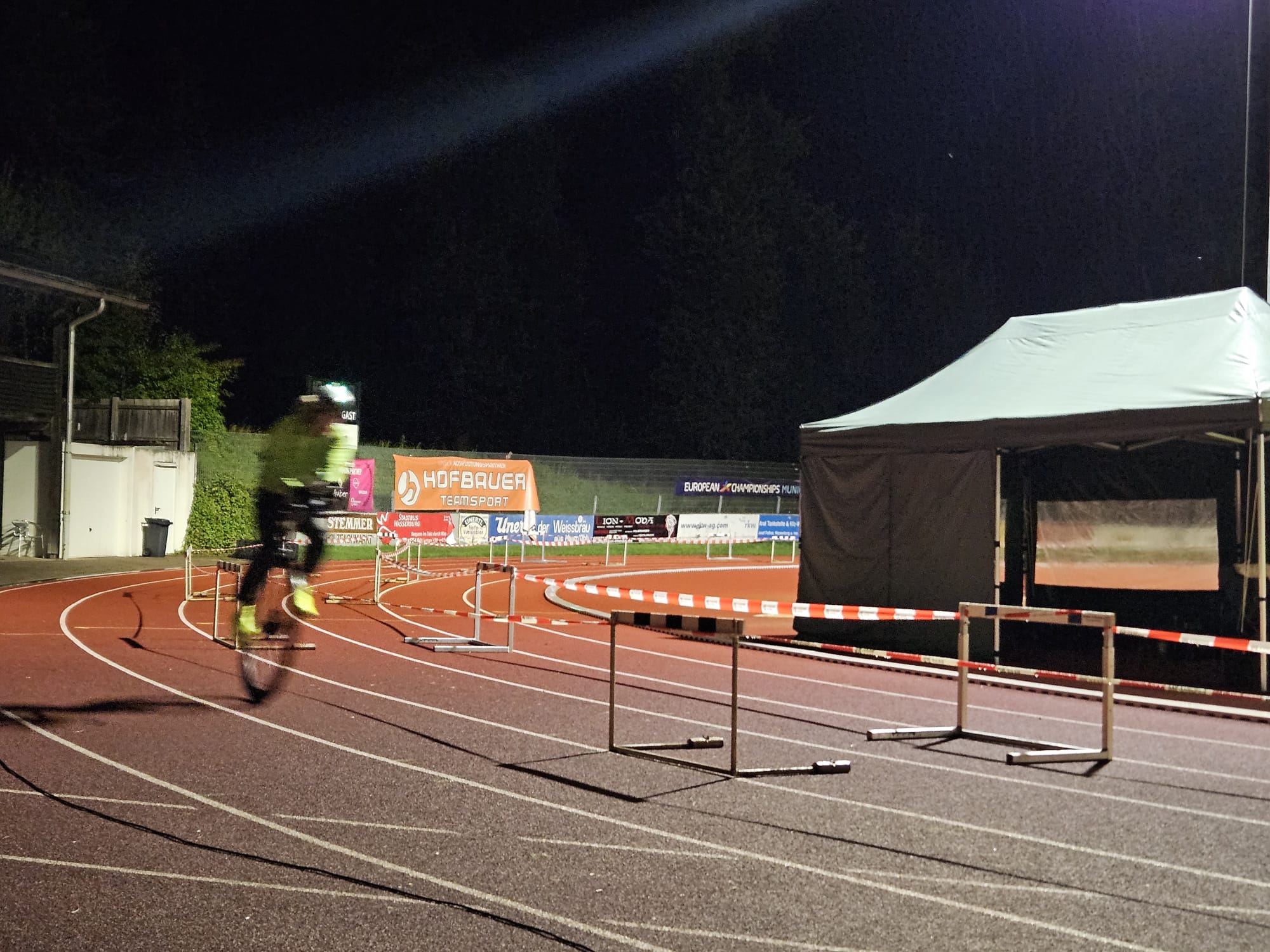 We started at Friday evening at 18:00. I did the attempt together with Lena Freimuth who broke the female record. To make sure, drafting isn’t possible, she rode in lane 1 and I rode in lane 5. Between us was a barrier (lane 3 & 4), also to make sure I couldn’t get into a shorter lane.
