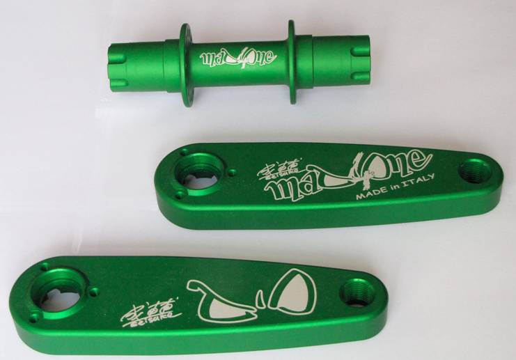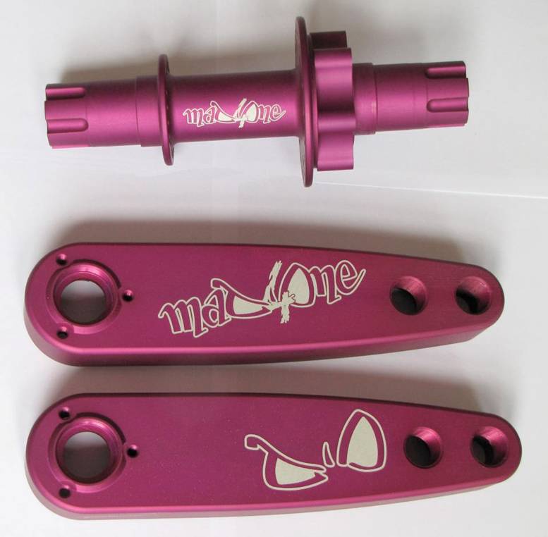 The Seisuke Kobayashi Signature race kit is in green, and the disc brake hub and double hole cranks are in pink. Soon, you’ll be able to customize the color of all your Mad4One parts. For more info, check out the facebook page and website.