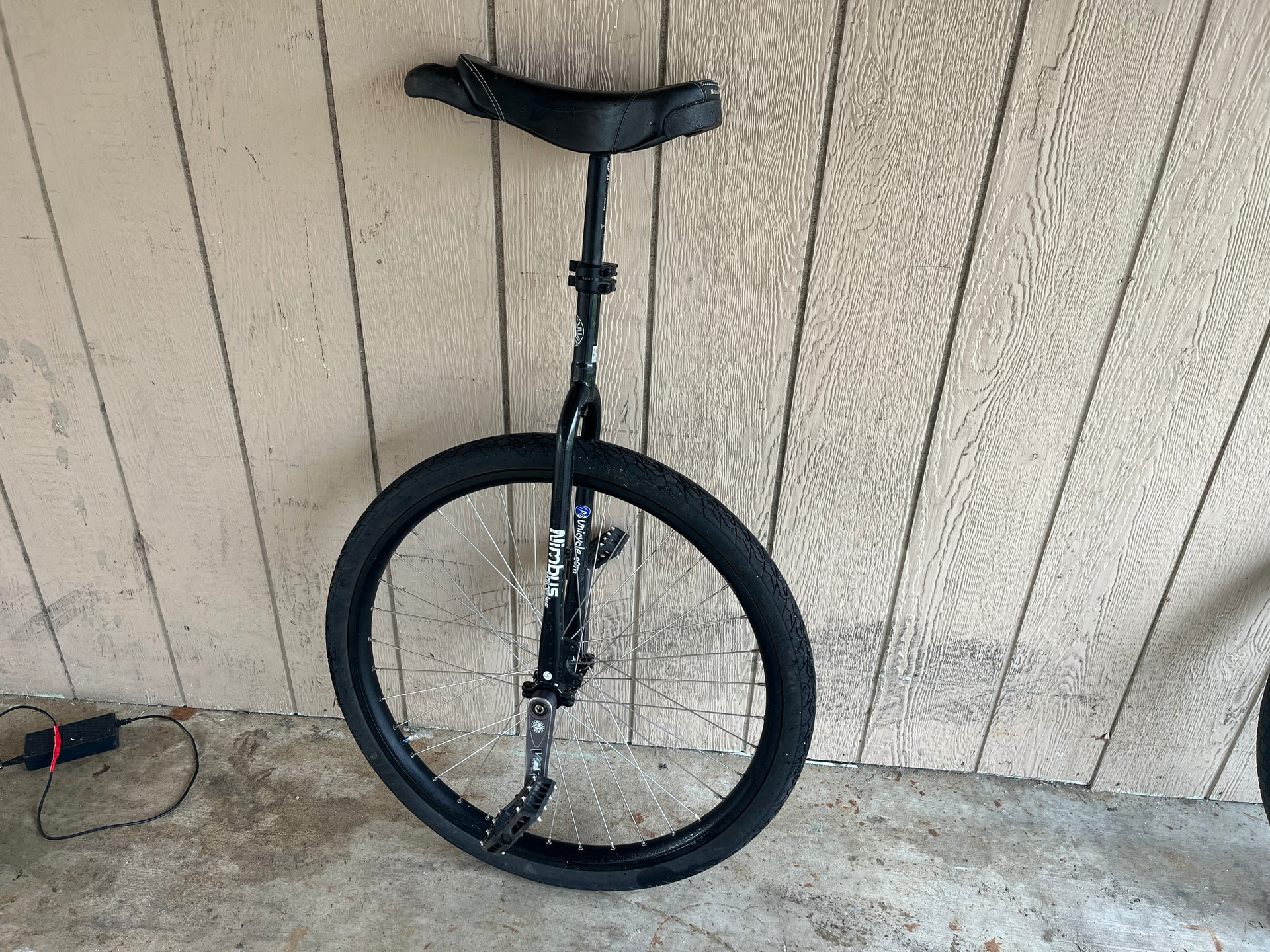 Selling my Nimbus 29 inch road unicycle. Great condition. Road for a couple years and just bought a KH so don’t need anymore. 125mm cranks and nimbus saddle. Has a slight hole in the back corner of the seat but doesn’t affect the performance any. This same unicycle is still for sale from unicycle.com for $560 before tax and shipping. Selling mine for $350. Willing to ship but I’d need to get a quote.