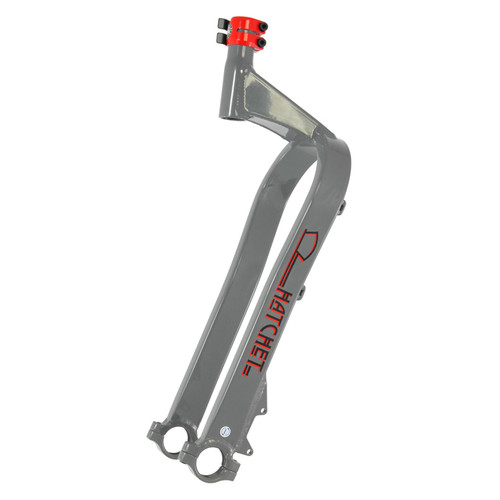 The Nimbus Hatchet builds on the amazing platform that the Oregon created, and moves it onto the next level. The frame comes with the brake installed on a new precision IS mount. The hose is also clipped in place with special red aluminium clips. The main challenge with “Fat-Uni’s” is the requirement for a super wide frame. This can make it uncomfortable to ride as it catches the riders’ legs. To resolve this the Nimbus Hatchet moves the frame behind the riders legs giving maximum clearance. This also means you can run some of the largest tires on the market, which includes the Snowshoe 5.05" tire.