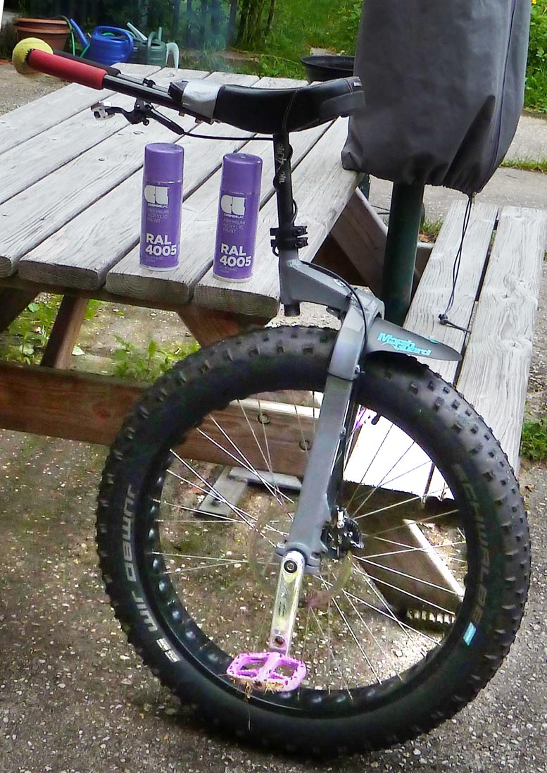 My wife and kids are leaving for a few weeks to go visit the in-laws and I’m going to take advantage of that time to swipe the wheel and crank assembly from my daughters 24” muni. This should give me awhile to play around with a smaller wheel size without actually buying another uni.