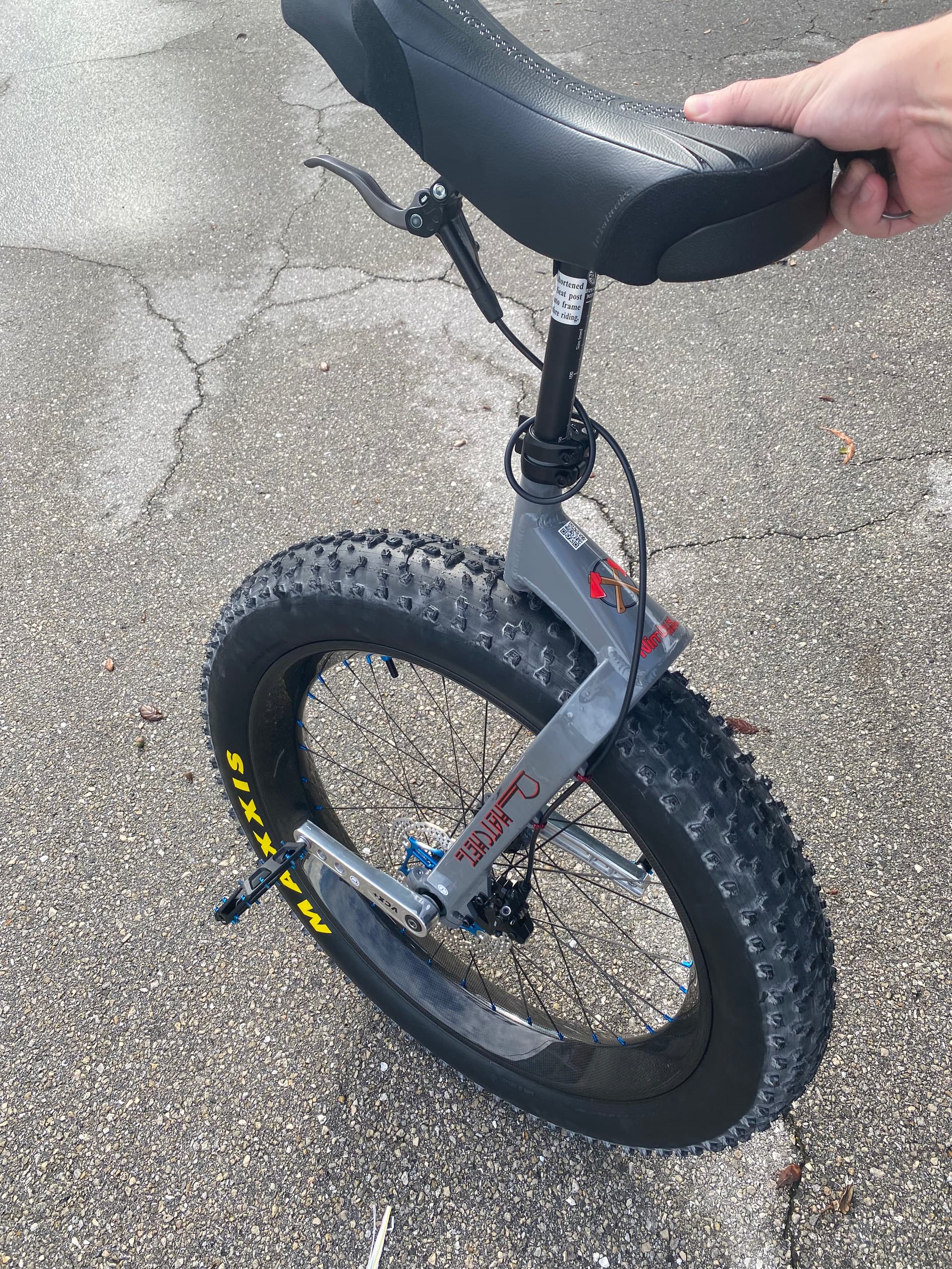 Checked Big Apple… I think I’m so STUCK with fat tires that anything that size is too thin. I did see some sleek tires in the fat bike size but figure weight will also be an issue, especially if that 2.5" will help with distance. Yeah, I figured that most people get a 2nd uni. I had 3 unis at one point but the 26" was biggest so I only used that one. Maybe down the line I should check into a proper road uni. I actually never tried out handles! Or played with seat angle. I got the Nimbus Oregon out of the box and rode it for years (2013 till… 2017?).