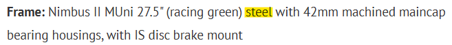 Where did you spot that detail - the only mention of steel on the advert I can see is with relation to spokes and hub?
