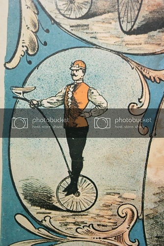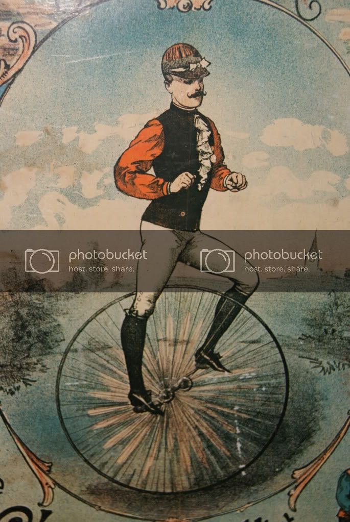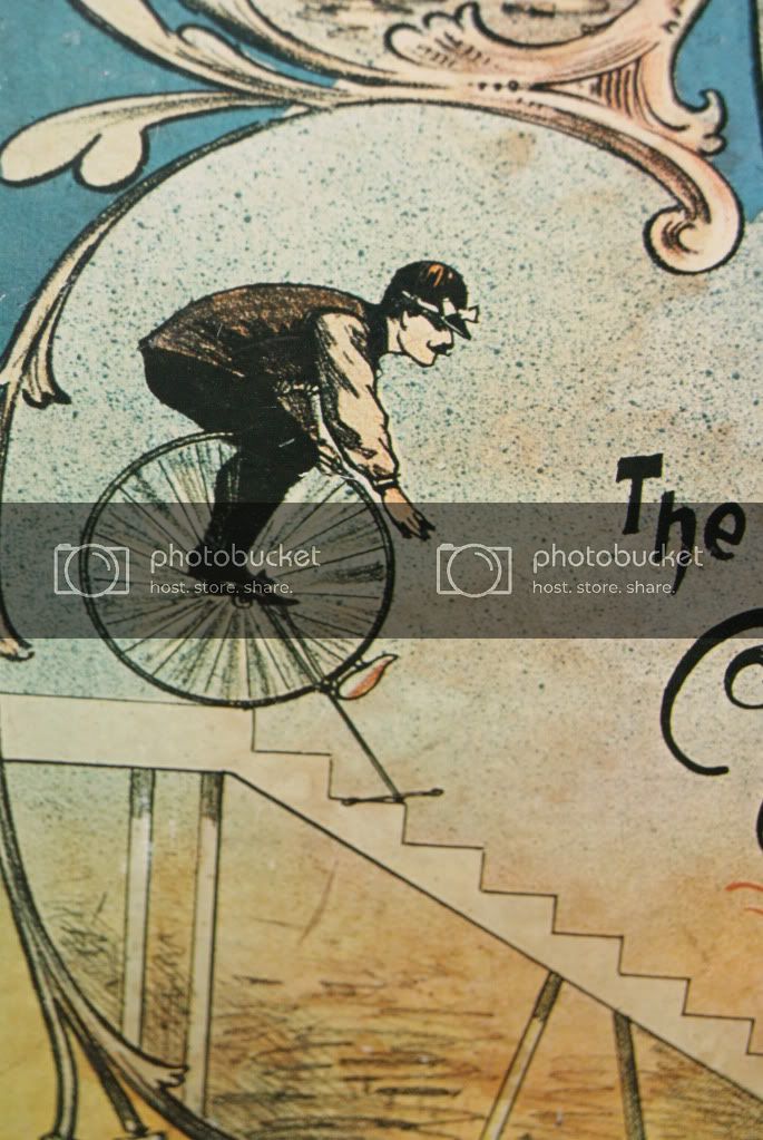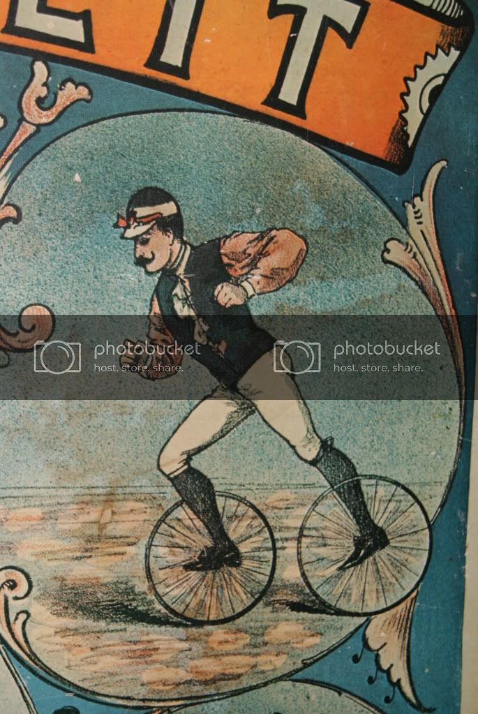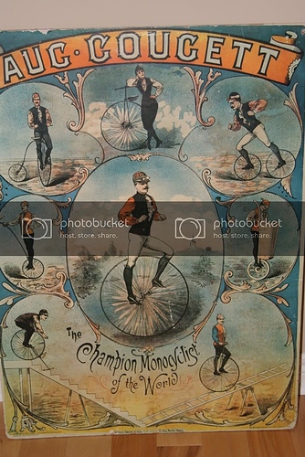 There was a similar poster (same image but different printing) in the Jenack home when I lived there in the 80s. Auc Coucett was a famous Vaudeville performer around the turn of the century. He and others like him did cycling acts with all sorts of ideas that were probably more or less original at that time. Some of it is stuff that still isn’t being reproduced today. Like that handlebar-drag down the steps. Can you say endo?