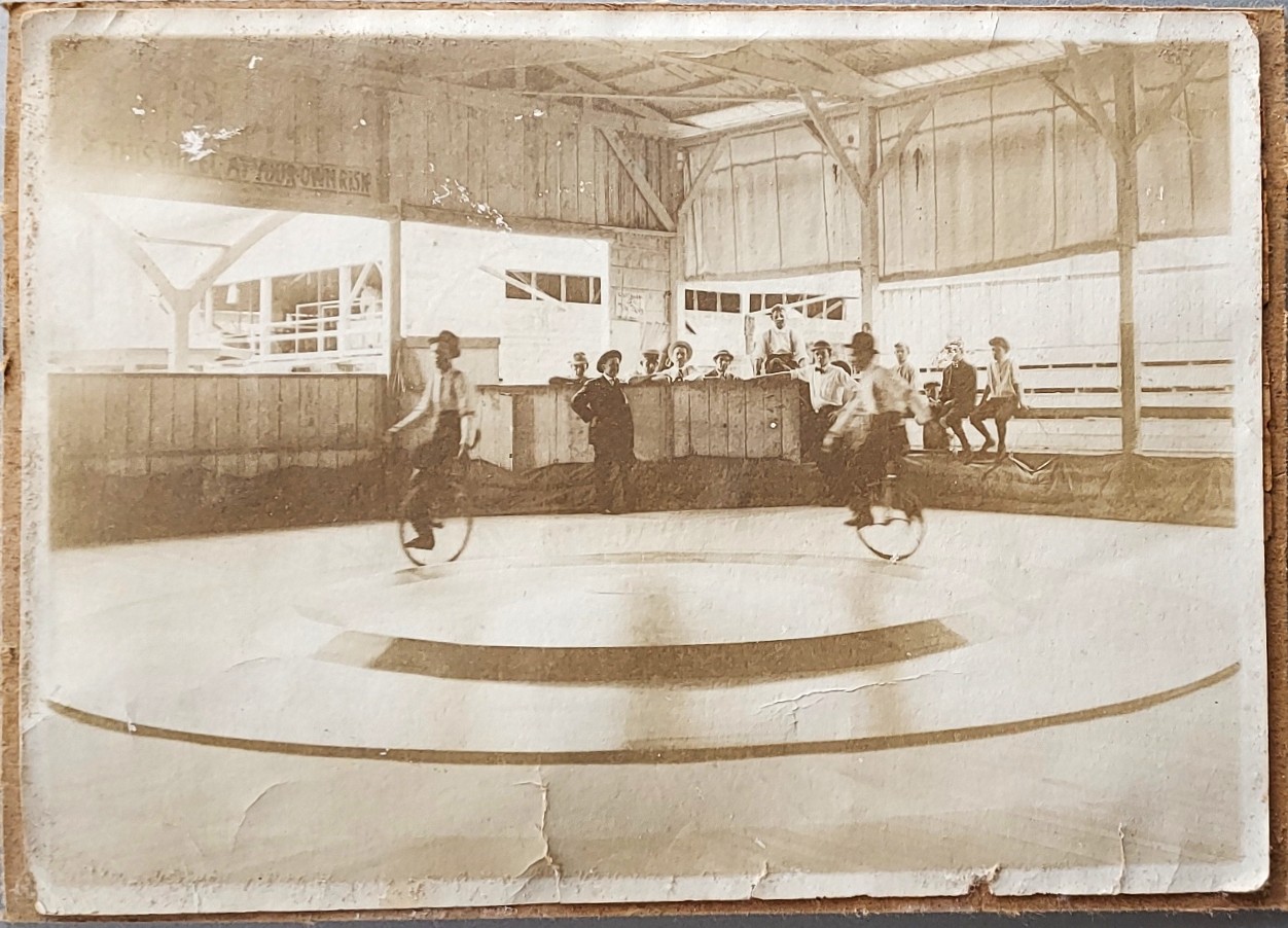 Looking for any info available on this vintage photo. The photo is approximately 6” x 5” and appears to be a legitimate photograph. Unfortunately, it is glued to a piece of cardboard so I can’t access the back of the paper. There is a sign in the upper left that reads ‘??? this wheel at your own risk’, and I thought there was another faint sign somewhere in the photo about a fair, but now I can’t see it.