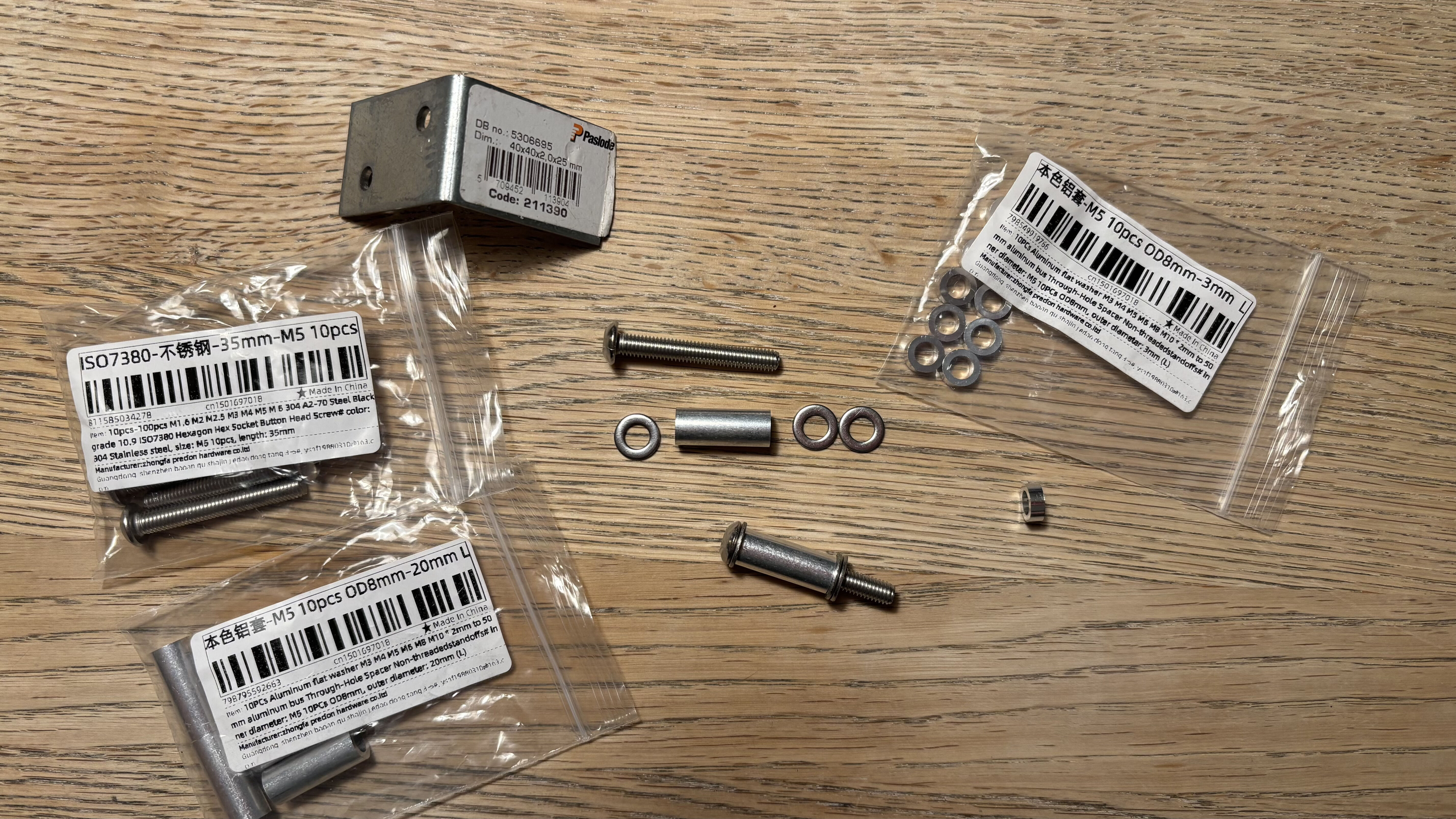 Just used a Dremel (multi-tool) as shown in the background to make a few cuts in the L-bracket and then used a bit of grease and some Loctite to put it all together. What exact spacer and washers you need will likely depend on the v-brake used. I just used some cheap/generic that I sourced from Aliexpress together with the other hardware.