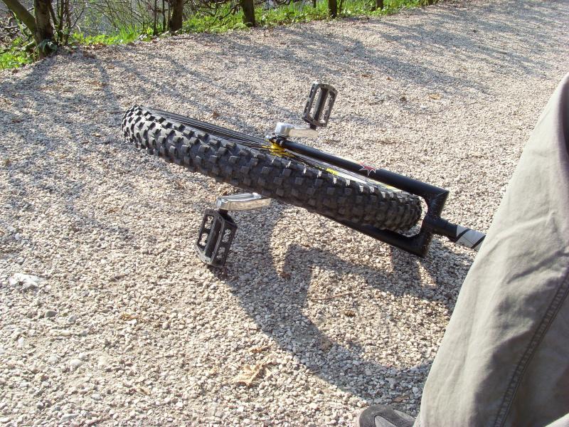 The 24" is a completely different story. Its nice a stiff, the brake mounts are really handy and because not much SIF hopping is used in Muni, you don’t have the problem of hitting your knees on the crown. The only time I have hit my knees on the 24" is when I have been going down VERY steep hills and I was cranking really hard to control my speed. The brake eliminates the risk even further.