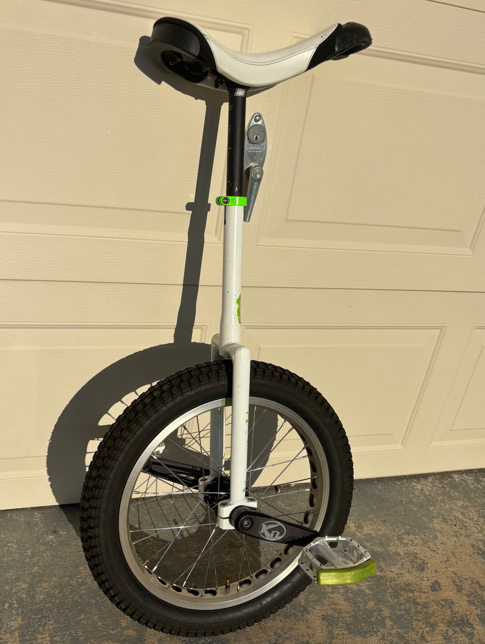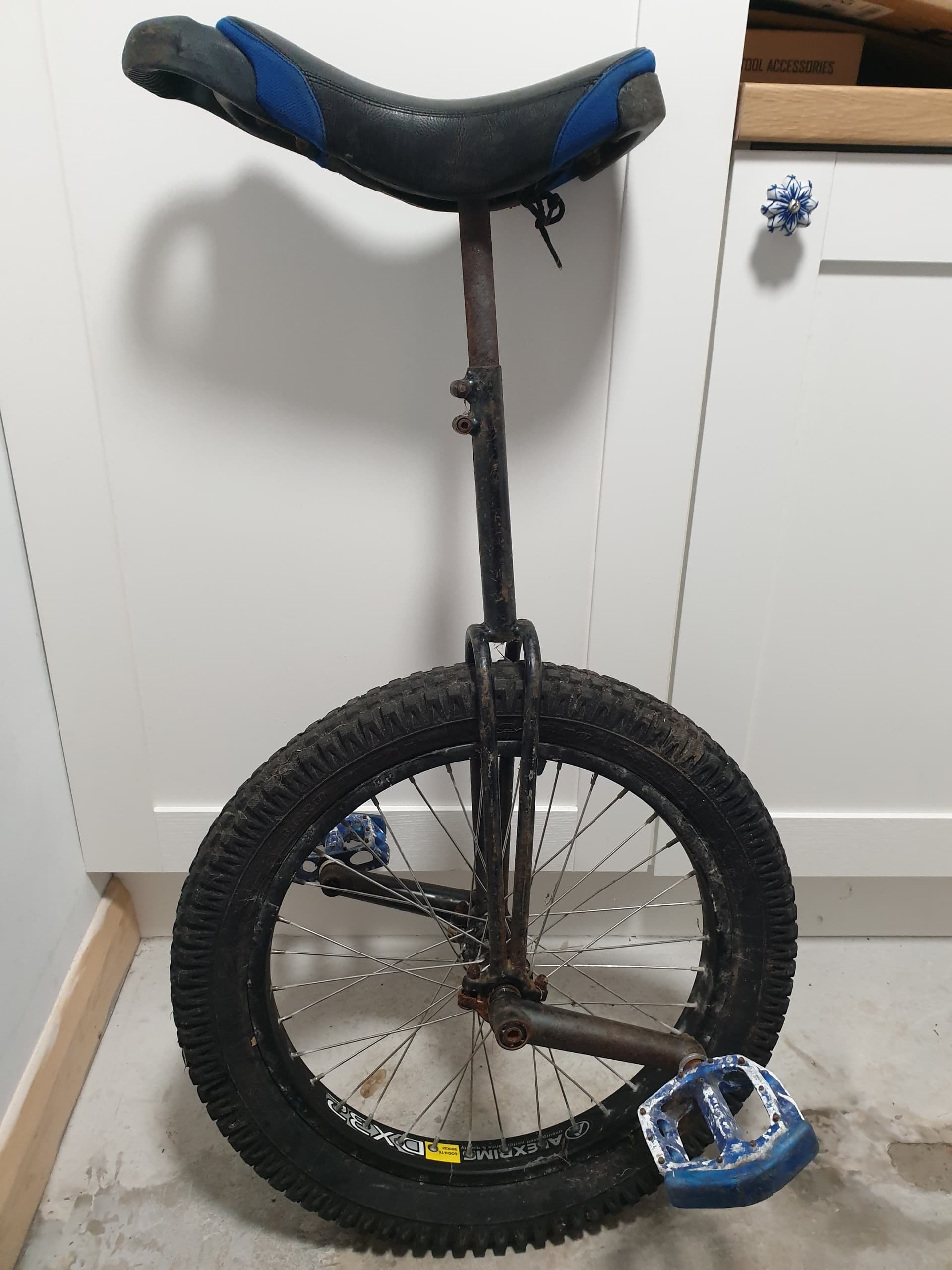 Thanks - at this stage all I know about the uni is that it was a bespoke build by person unknown, rescued and sold on by a non-unicyclist in Cornwall who hoped it might make him a bit of money on ebay (I suspect he was disappointed!).