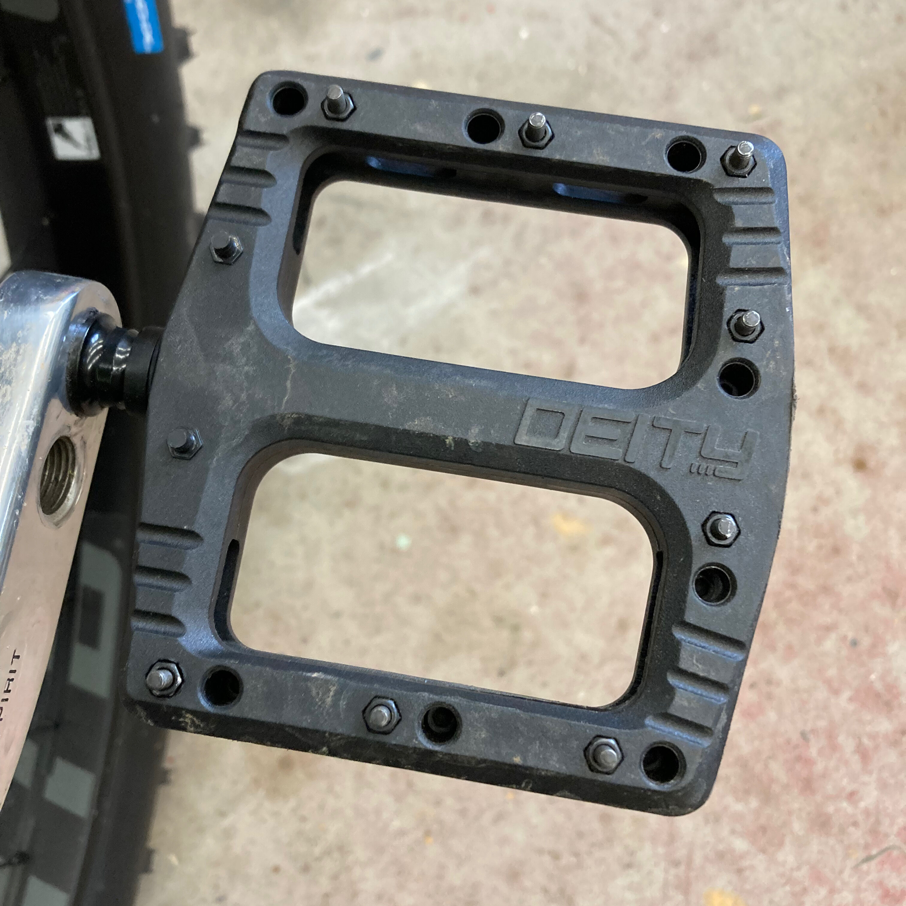 I like everything about these pedals except the shape. They’re convex, so if you ride on the balls of your feet then you never quite feel locked in. I originally bought these for my 36er but really didn’t like the feel, so moved them to my muni. I didn’t mind the convexity so much for muni, but still, they never felt quite right.