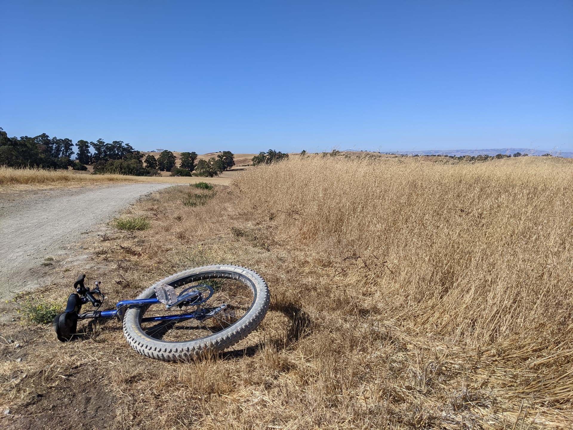 The Golden (brown) Hills of California. They’re out there mowing to reduce fire danger. In the center left you can just barely see the Stanford dish.