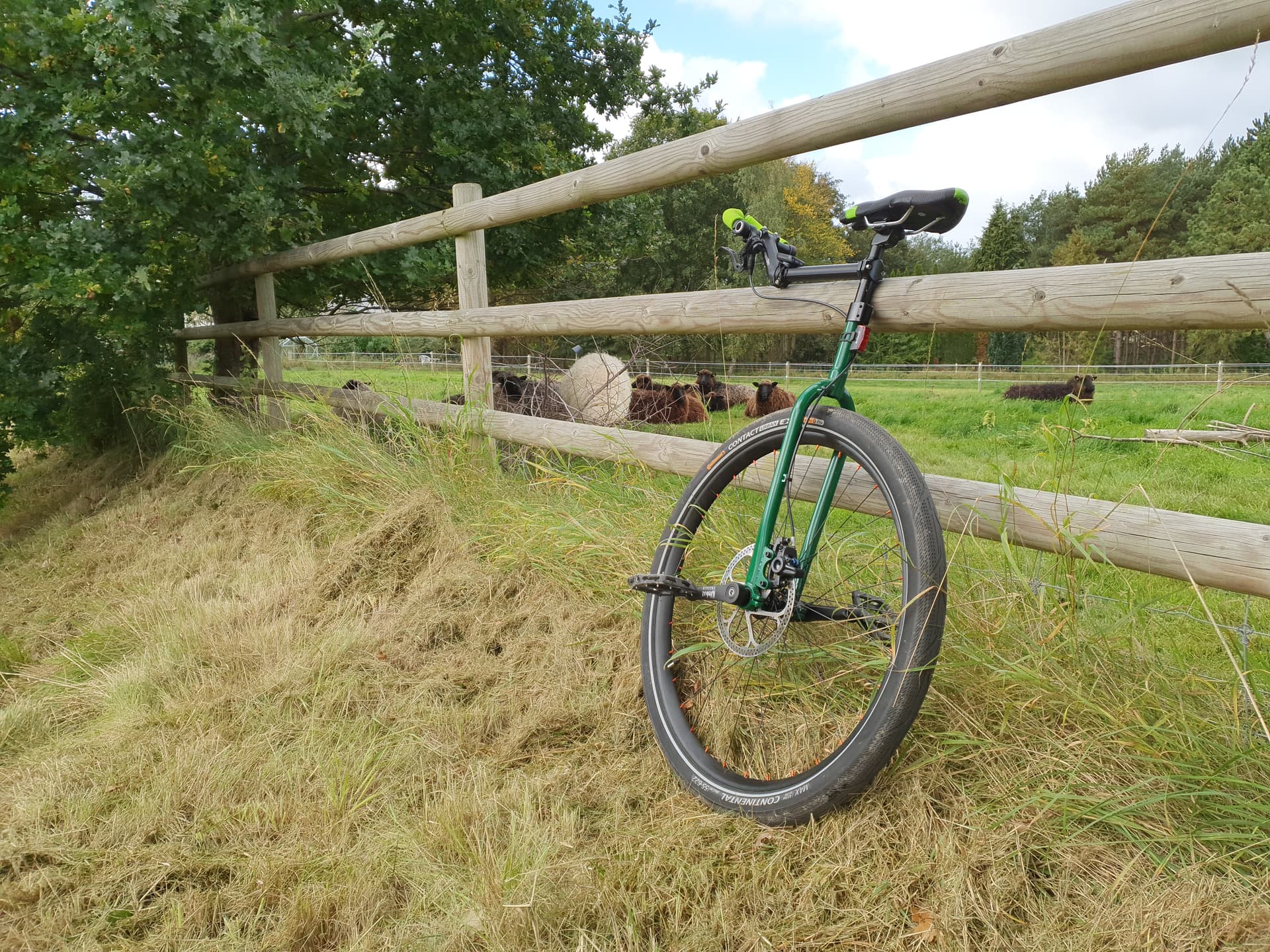 Back on my favorite unicycle. For some reason I even think it looks faster than my Schlumpf a few post up and it is just a reasonable priced alu rim in a Nimbus steel frame … with my own custom handlebar.