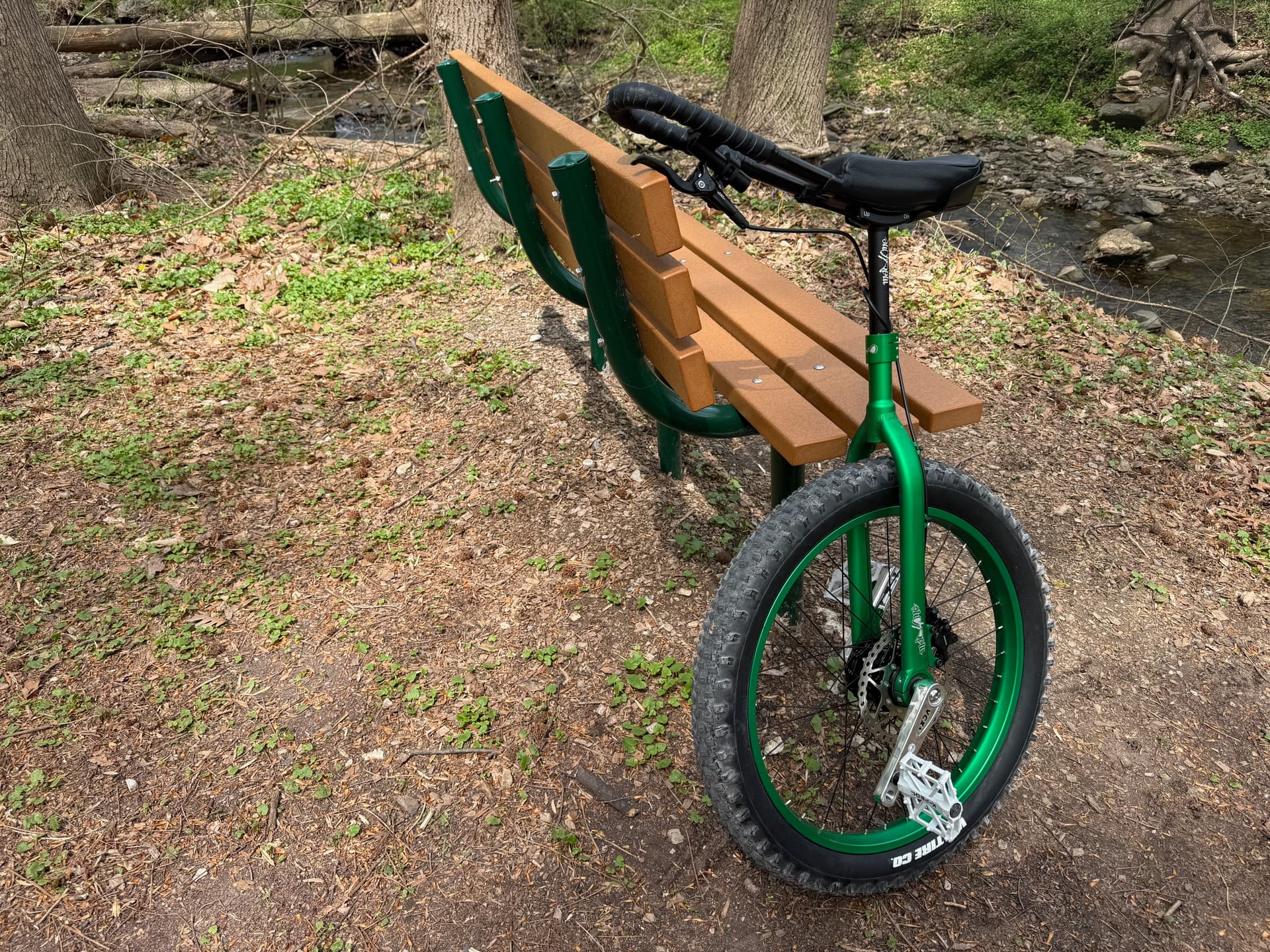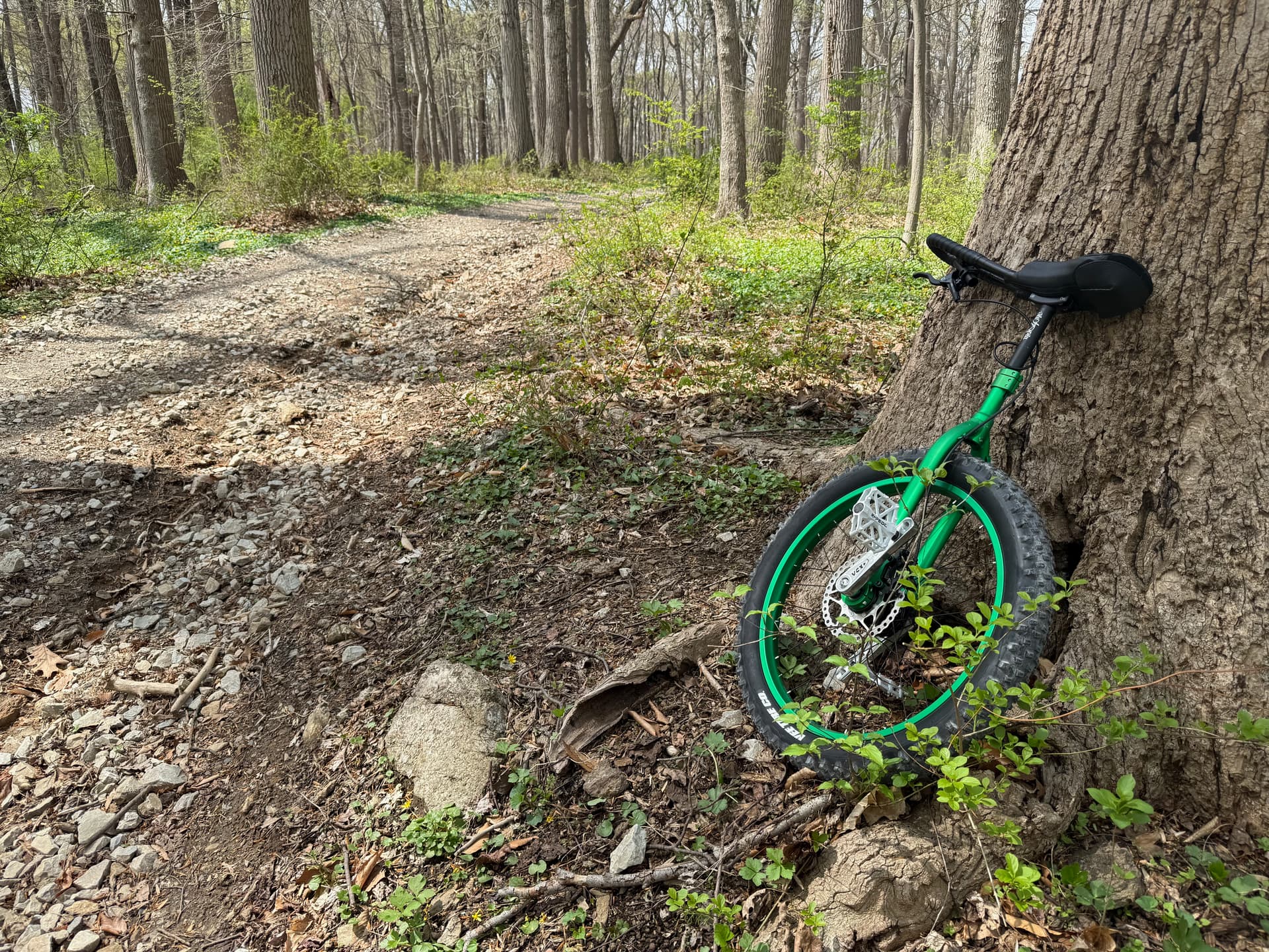 Today was my second test ride on the g24 I laced a couple weeks ago. I was going to ride it on flat trails again this week after last week’s fun but 3 miles in to flats, I couldn’t wait any longer and rode over to the light muni trails on the other side of the creek.
