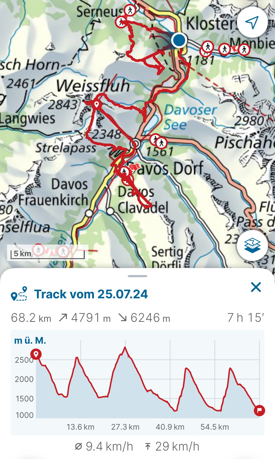 6200 vertical downhill meters on all different technical singletrails. Uphill mostly by cablecars, transfers from on to the other on gravel roads.