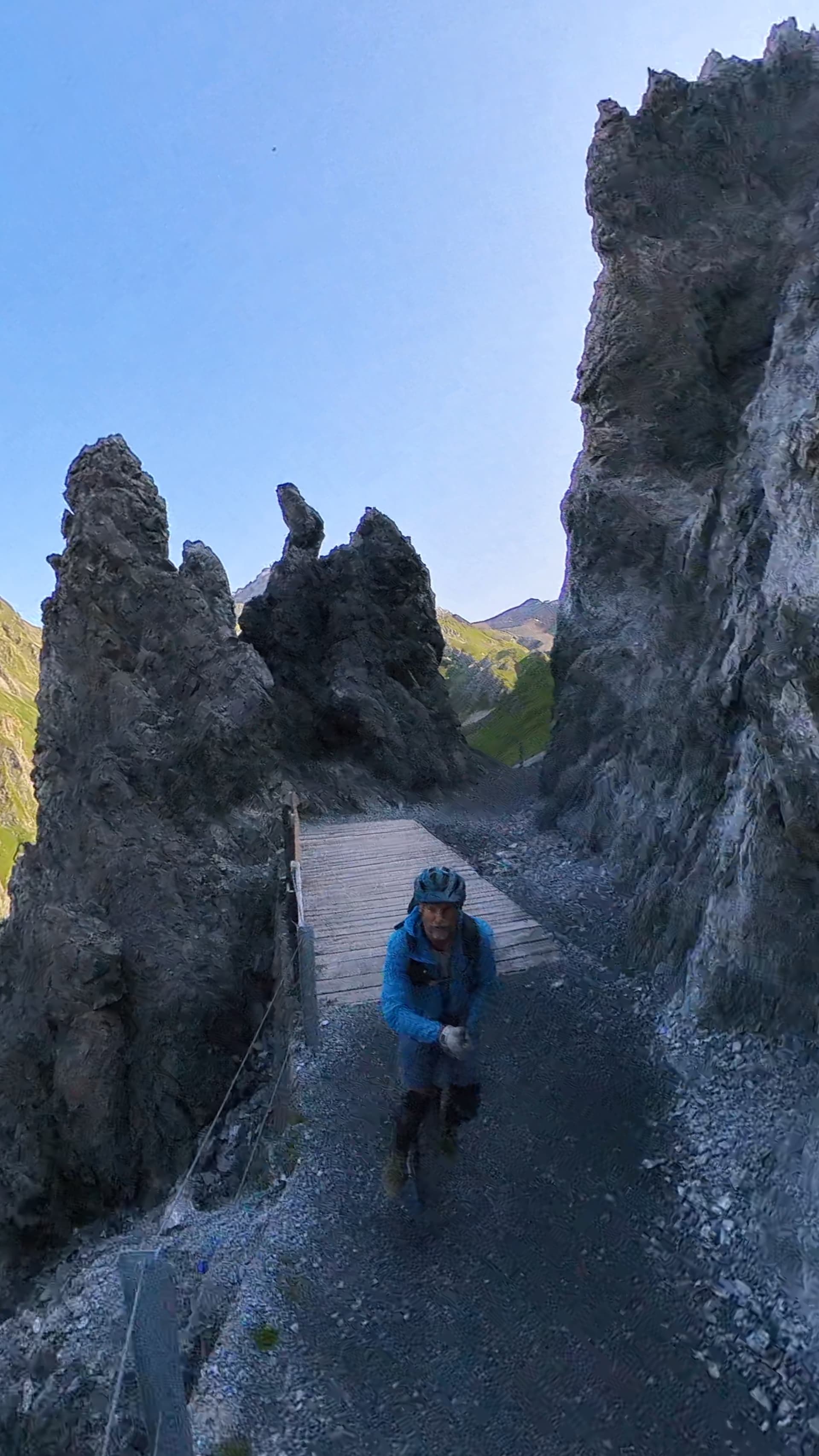 it is the insta 360 X4 with a 3 meter selfiestick (not v ery easy to ride with it…) and yes those are stills, the Reel is on my Insta account (Markus Büchel)