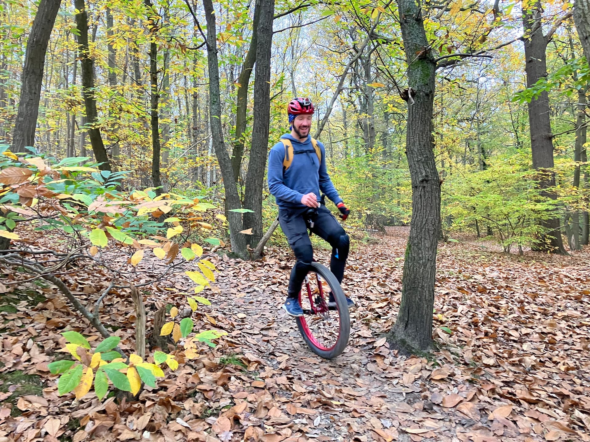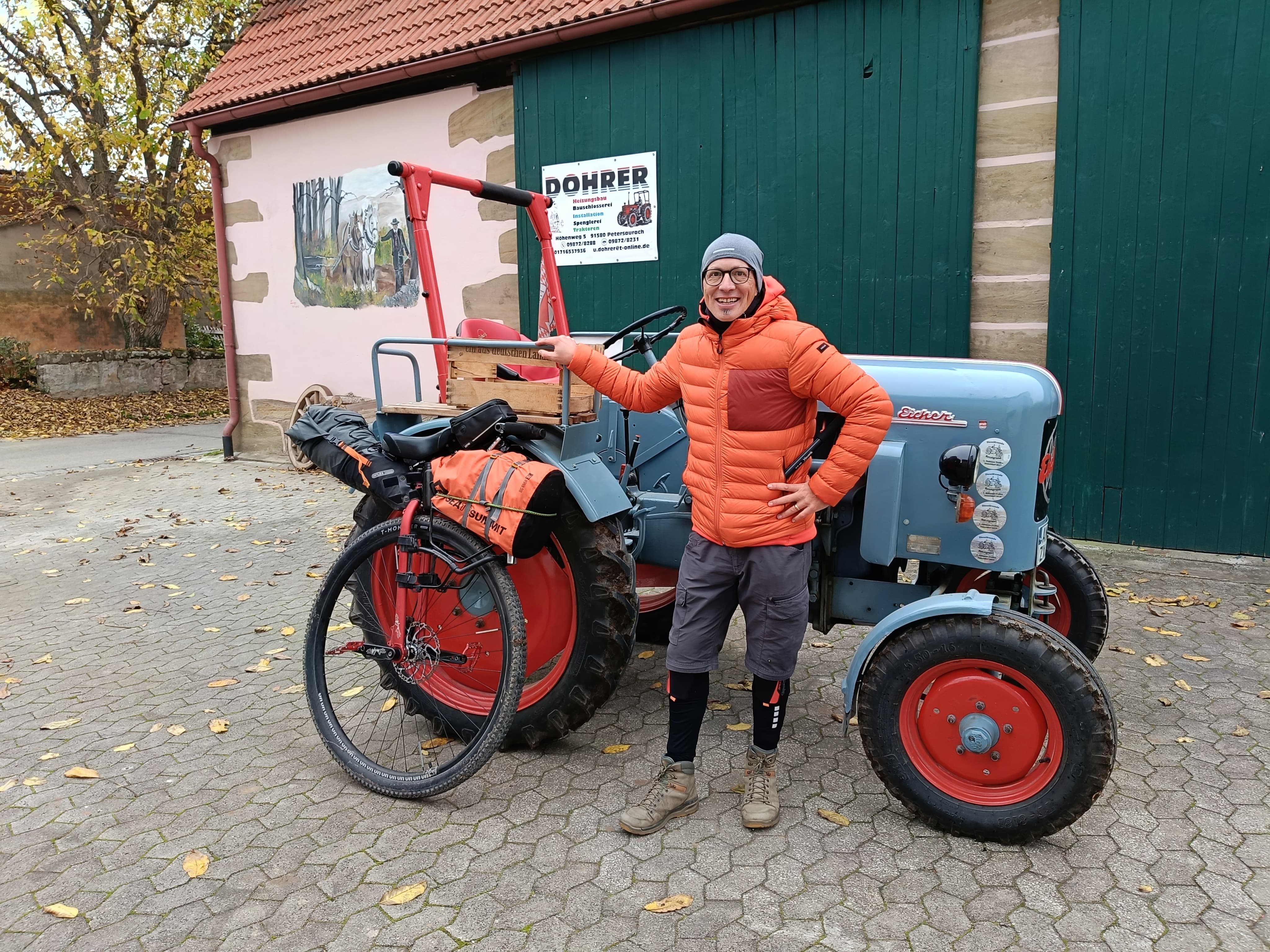 Two-day Unipacking tour, where I pitched my tent with a farmer I met by chance who collects old tractors. So I was allowed to swap one wheel for 4 wheels! That was great fun!