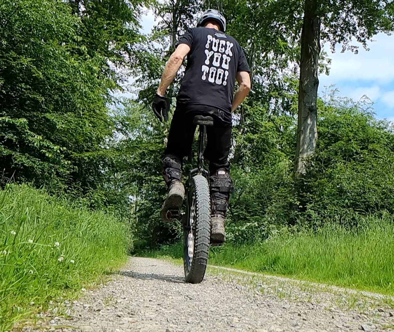 Today i had a beautidul ride with my 29" Muni. Yes it’s make some noising. The Bearings, Brake Pads and the Pedal and i think maybe the Spokes . It doesn’t run very well at the moment but i don’t know where comes the noosing from with part of the wheel. I don’t have a realy good timetable to fix the problems from the unicycle. My Timetable says: Work, Work, Work…