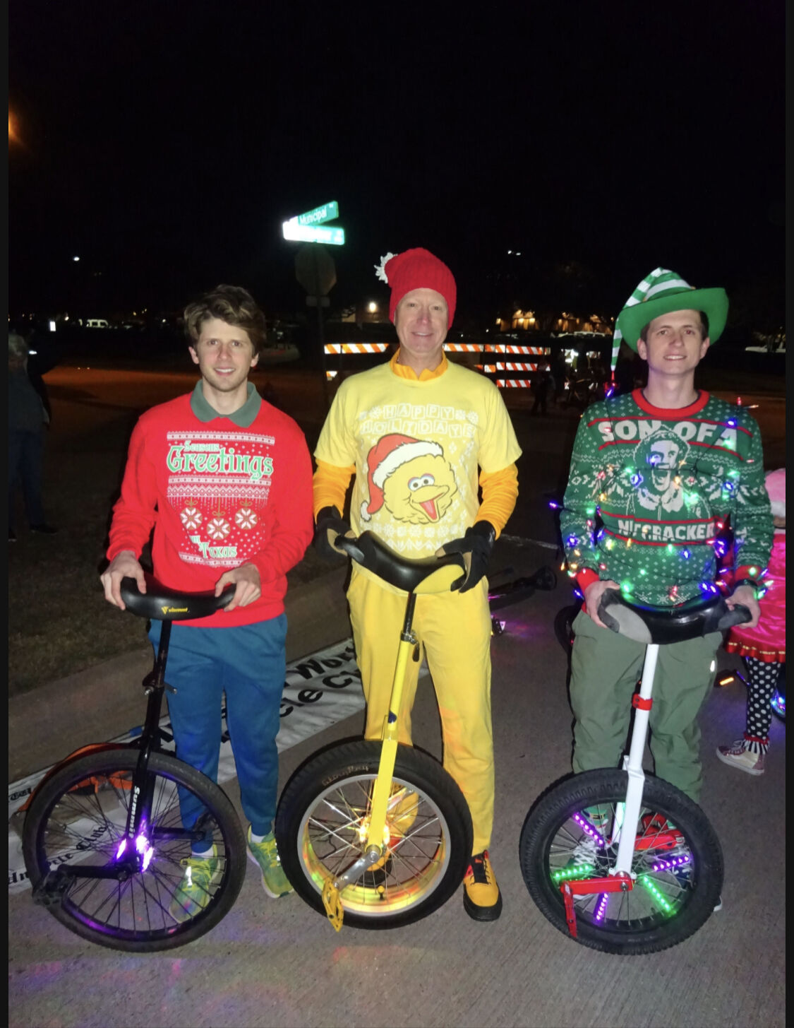 On the heels of the parade post by @TrevEv , I’ll post this from the recent “Parade of Lights” our unicycle club rode in. We had many other participants, but due to the low light of our staging area, we decided to limit photos to 3 persons.