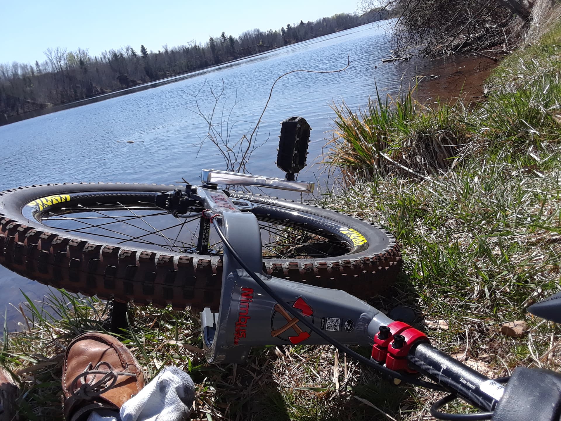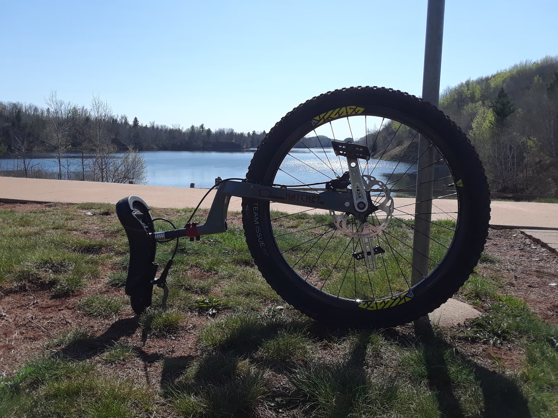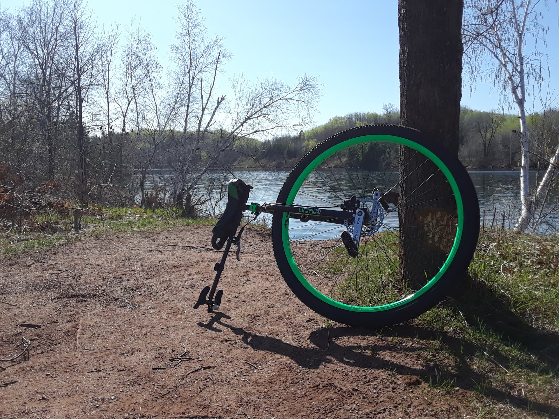 I’ve been to these trails once before during the winter. It was my first time there and I didn’t do much other than ride a little beginner loop once or twice and slipping on some ice This time however was sooo much better. Instead of riding the 26x4.8 that came with the Hatchet, I got to properly ride the 27.5x2.5 I had built up while the snow was melting. The fat tire is a sight to behold, but for me muni is tiring enough by itself without pushing a big wheel around. I felt much more at home on the lighter wheel!